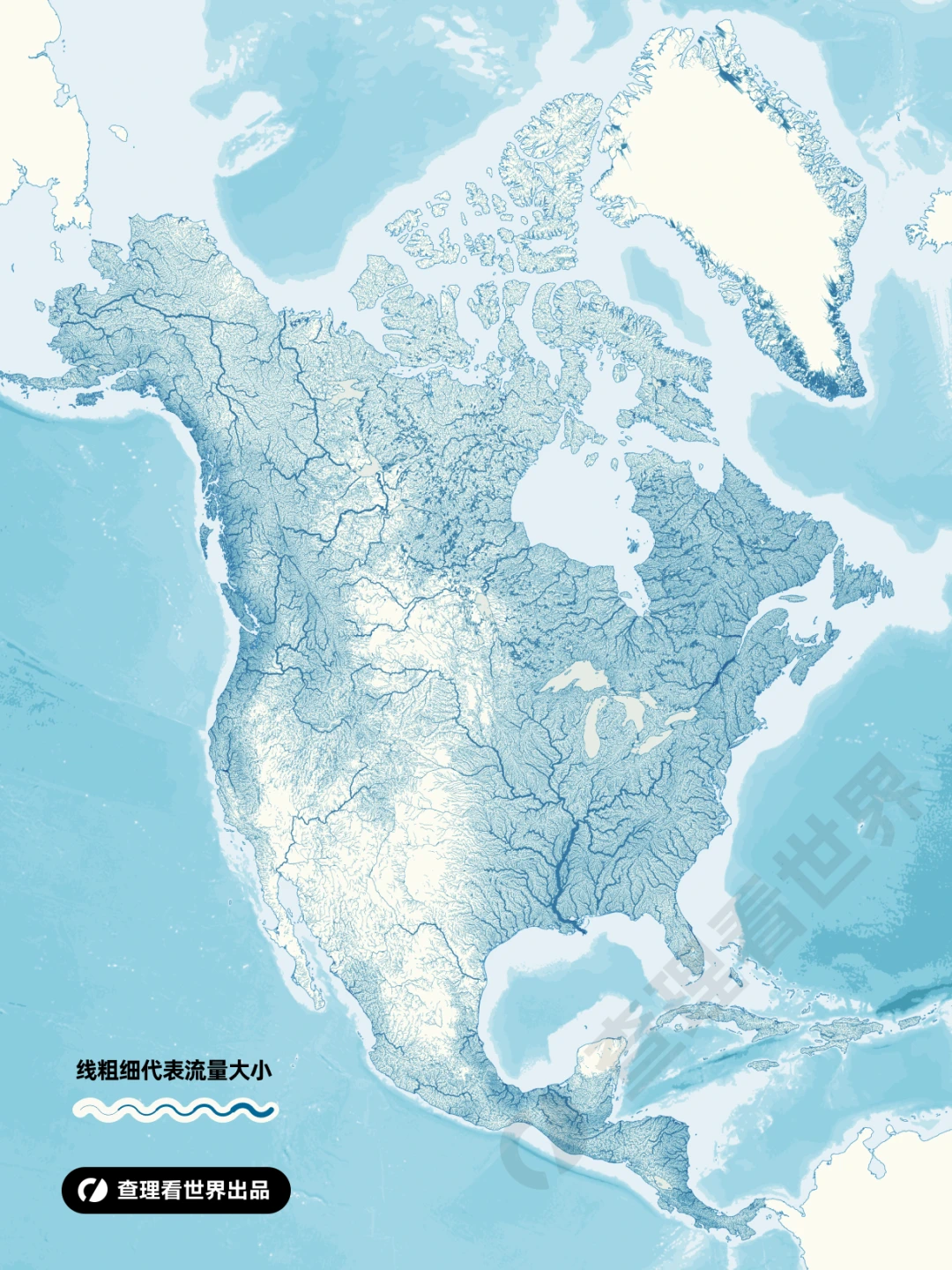 北美洲河流水系纵横交错,以落基山脉、阿巴拉契亚山脉为主要分水岭,形成三大核心流域,兼具磅礴气势与生态价值。 密西西比河流域是绝对核心,作为北美第一大河,它发源于明尼苏达州,向南横贯美国中部,串联起密苏里河、俄亥俄河等重要支流,流域面积超 322 万平方公里,覆盖美国 31 个州,不仅是美国内河航运的 “黄金水道”,更滋养着广袤的中央大平原,孕育了丰富的湿地生态。 西部的科罗拉多河流域独具特色,它劈开落基山脉,塑造出科罗拉多大峡谷等壮丽地貌,虽水量不及密西西比河,却为干旱的美国西南部提供关键水源。北部的圣劳伦斯河流域则连接五大湖与大西洋,构成北美重要的跨国水运通道,串联起美国东北部与加拿大东南部的经济核心区,三大流域共同编织出北美洲活力满满的水脉网络。 ★原创地图内容谢绝转载★