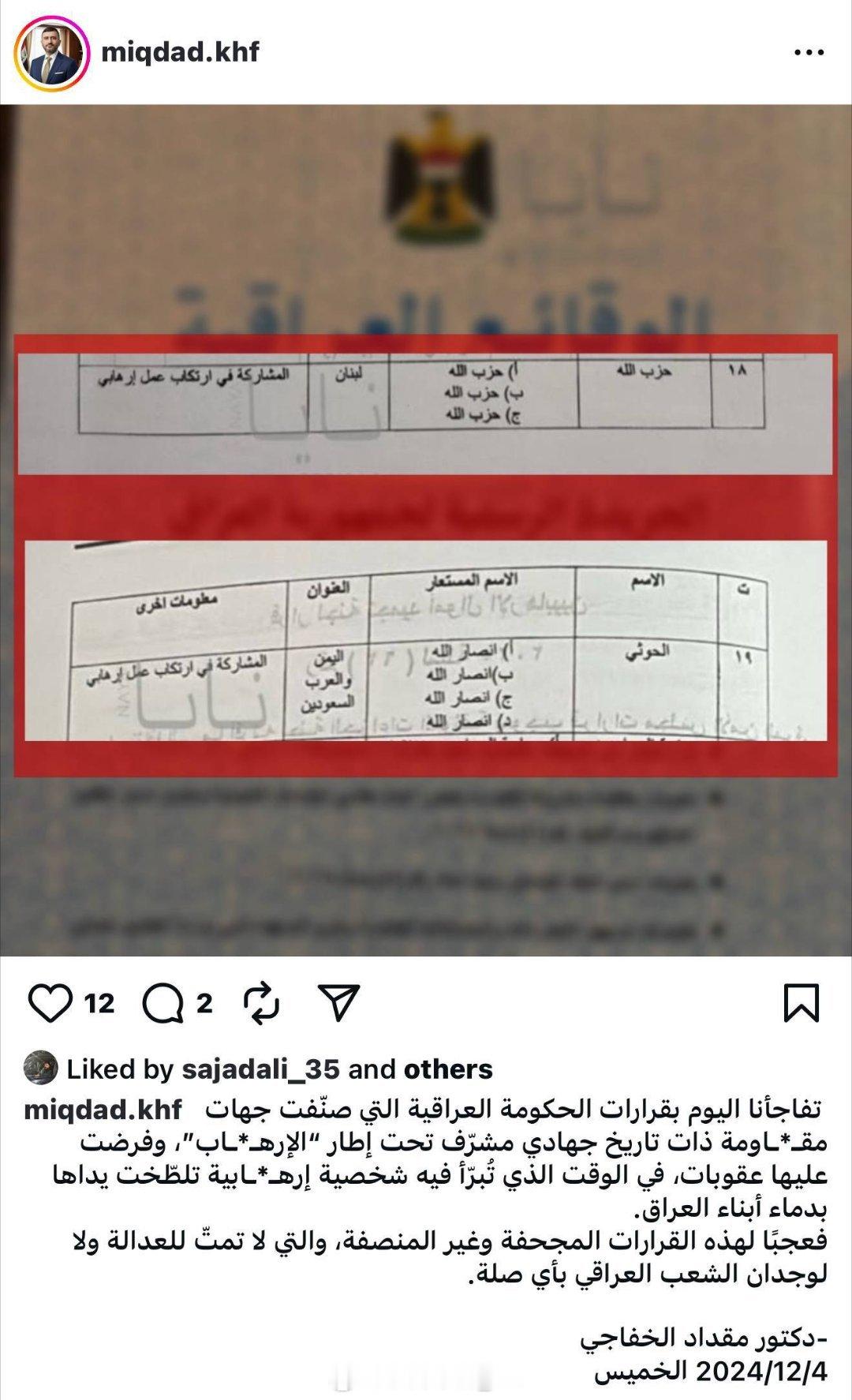 今天伊拉克的一个热点舆论事件,有媒体发现伊拉克司法部下属的“冻结恐怖分子资金委员会”在10月28日偷偷发布了一个第61号决定,将黎巴嫩“真主党”和也门胡塞武装认定为“恐怖组织”,要求冻结二者在伊拉克的资产。这个发现引发了许多媒体和政客的谴责。随后伊拉克央行发表声明,称该委员会的职责是冻结与IS和“基地”组织有关联团体的资金,但某些人出于某些动机进行了违规操作,因此他们裁定第61号决定无效,删除上述认定。