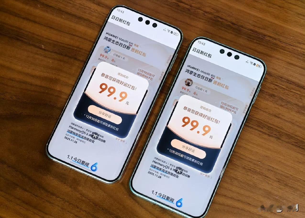 你能忍住不买吗? 你能受得了这种诱惑吗? 华为推出的鸿蒙原生系统手机,当下最热门的当属Mate 80系列以及Mate X7系列。 购买这些手机进入系统首日签到,基本都能获得88、99元的签到红包,而且每天都可以签到。 据已购买的用户反馈,一周签到所得金额已达500元。 这样的补贴力度,恐怕是国内任何厂家都难以企及的。 这表明华为为了提升鸿蒙系统设备的销量,投入了大量的财力与物力。 据半官方预测,若购买新款手机并每日签到鸿蒙系统,连续签到三个月,最终基本可获得1000元的补助金额。 mate80 mate 80 华为鸿蒙 这或许是对手机最好的宣传了。