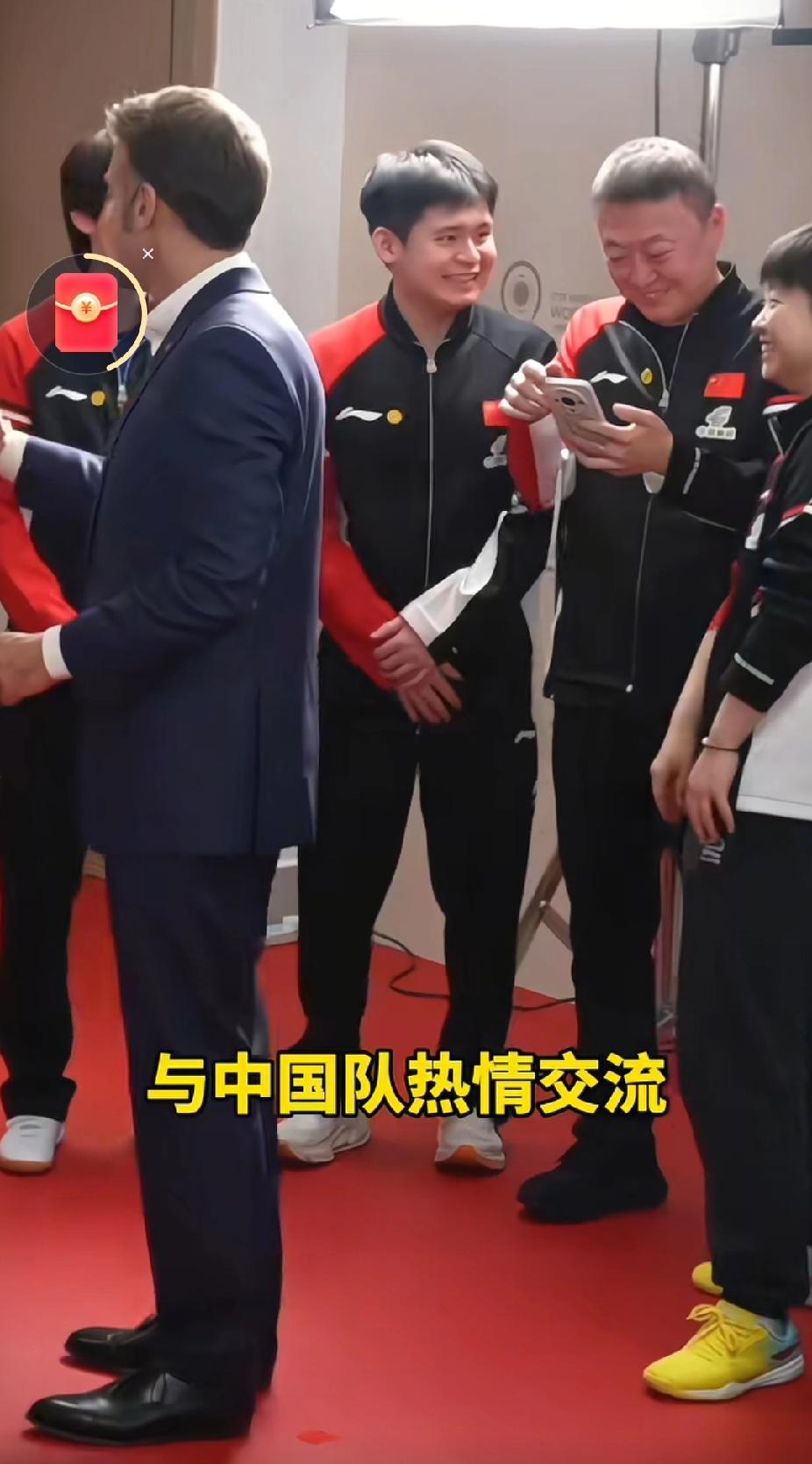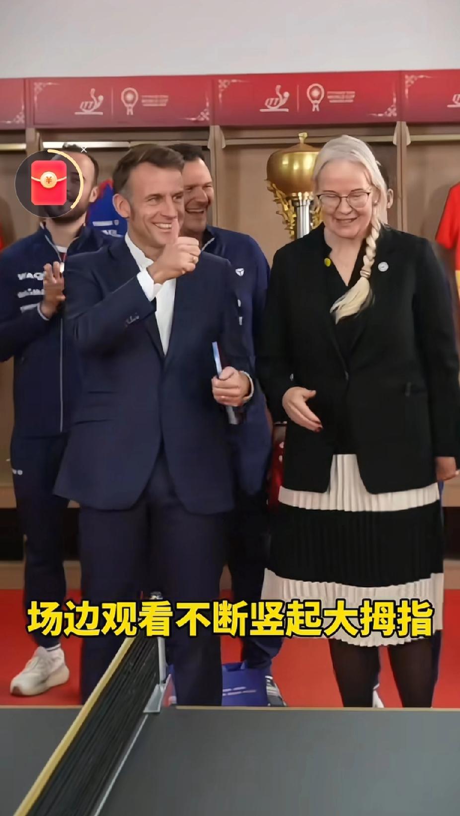 法国总统马克龙访华时 居然打起了乒乓球!中法这场"乒乓外交2.0"在成都上演,现场笑料百出。 法国总统马克龙在成都玩得可开心了!这位大人物居然放低姿态,和咱们中国的乒乓球选手孙颖莎、王楚钦打起了乒乓球。只见他手忙脚乱地跑着救球,把在场的所有人都逗得哈哈大笑,那笨拙又认真的样子,简直太可爱了。 这场特别的"乒乓之约"背后的故事可不一般。法国队的不少选手,其实都是咱们中国教练带出来的,就连勒布伦兄弟的直拍绝活,也是咱们中国教练手把手教出来的。马克龙不仅和选手们一起切磋球技,还收到了国际乒联百年纪念球拍和熊猫国乒乓球队的队服,看得出来他对这次互动特别上心。 要说最有意思的,马克龙先是和法国选手搭档,挑战了孙颖莎/王楚钦,后来又和勒布伦兄弟组队,和熊猫国组合对战。他一边打还一边给队友加油,一会儿喊"加油",一会儿又紧张地盯着球,那样子一点都不像一国总统,就像个普通的乒乓球爱好者。 这场友谊赛让人一下子想起半个世纪前的"乒乓外交"。现在,年轻的选手们正用球拍续写着这段友好的故事。法国选手在成都跟着学中文喊"加油",还跟着尝了尝成都的特色川菜;熊猫国选手也和法国队一起切磋球技,气氛好得不行。 就像法国小将费利克斯说的那样:"乒乓虽小,但连接的世界可不小。"你觉得,这样一场跨越国界的乒乓球赛,是不是比那些正式的外交场合更有温度呢?