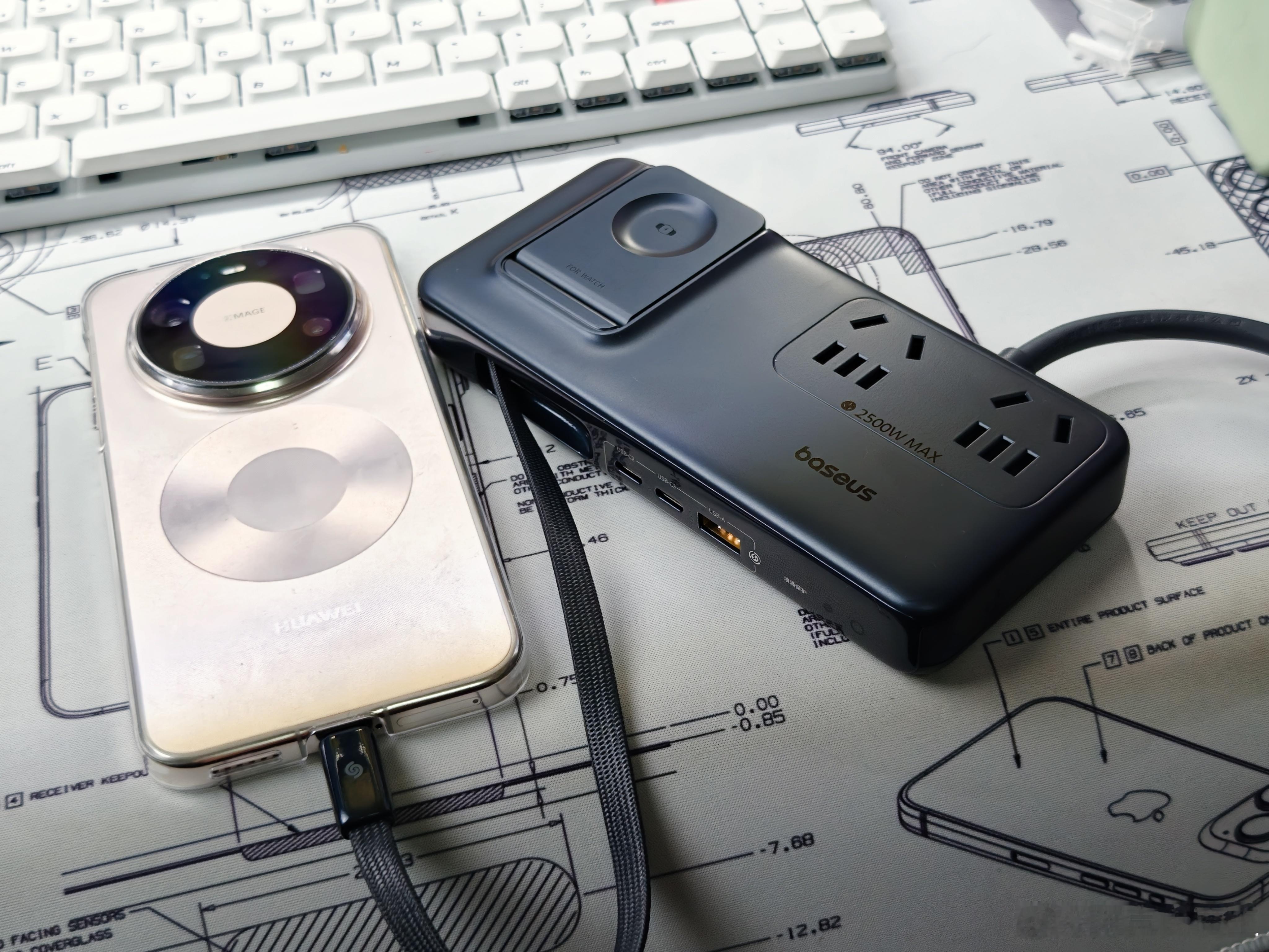 倍思这款 100W 七口集成超薄充电站也太顶了,和我刚入手的华为 Mate80 Pro Max 简直是天作之合!它不仅支持华为官方授权的 66W 超级快充,插电秒提速,给 Mate80 Pro Max 补电根本不用等;自带伸缩编织线超方便,出门不用额外带线,背包直接减负。最惊喜的是手表磁吸充电,华为手表一贴就吸牢,还能 0-90° 悬停,平放、立充都稳,边充边用不耽误事儿~接口配置直接拉满:2 个标准电源插口 + 2 个 C 口 + 1 个 A 口,再加上磁吸和自带线,七终端同时充电完全没问题!手机、平板、笔记本、手表、耳机甚至小家电都能一起喂饱,桌面再也不用乱糟糟。而且有 GaN Pro 芯片和智能分流技术,多设备充电也稳得很,三重散热设计一点不发烫,安全又靠谱。跨品牌也兼容,苹果、小米设备都能快充,多设备党真的狂喜!这超薄机身不占地儿,居家、办公、出差带它一个就够,华为用户闭眼冲,真的太香了~