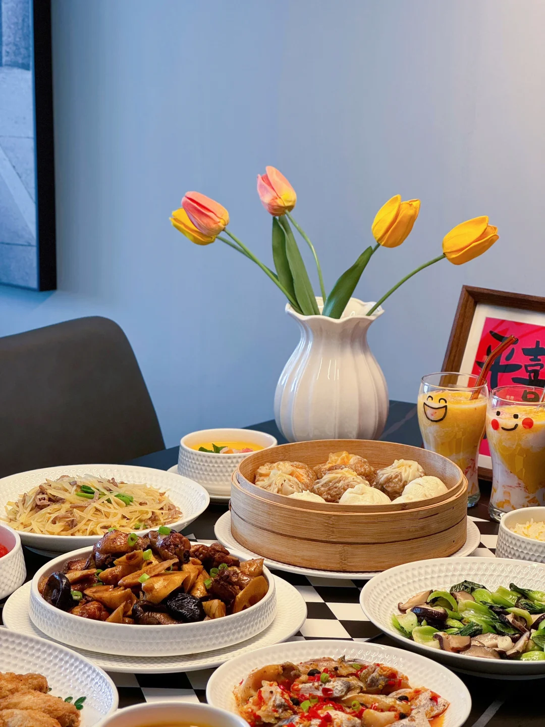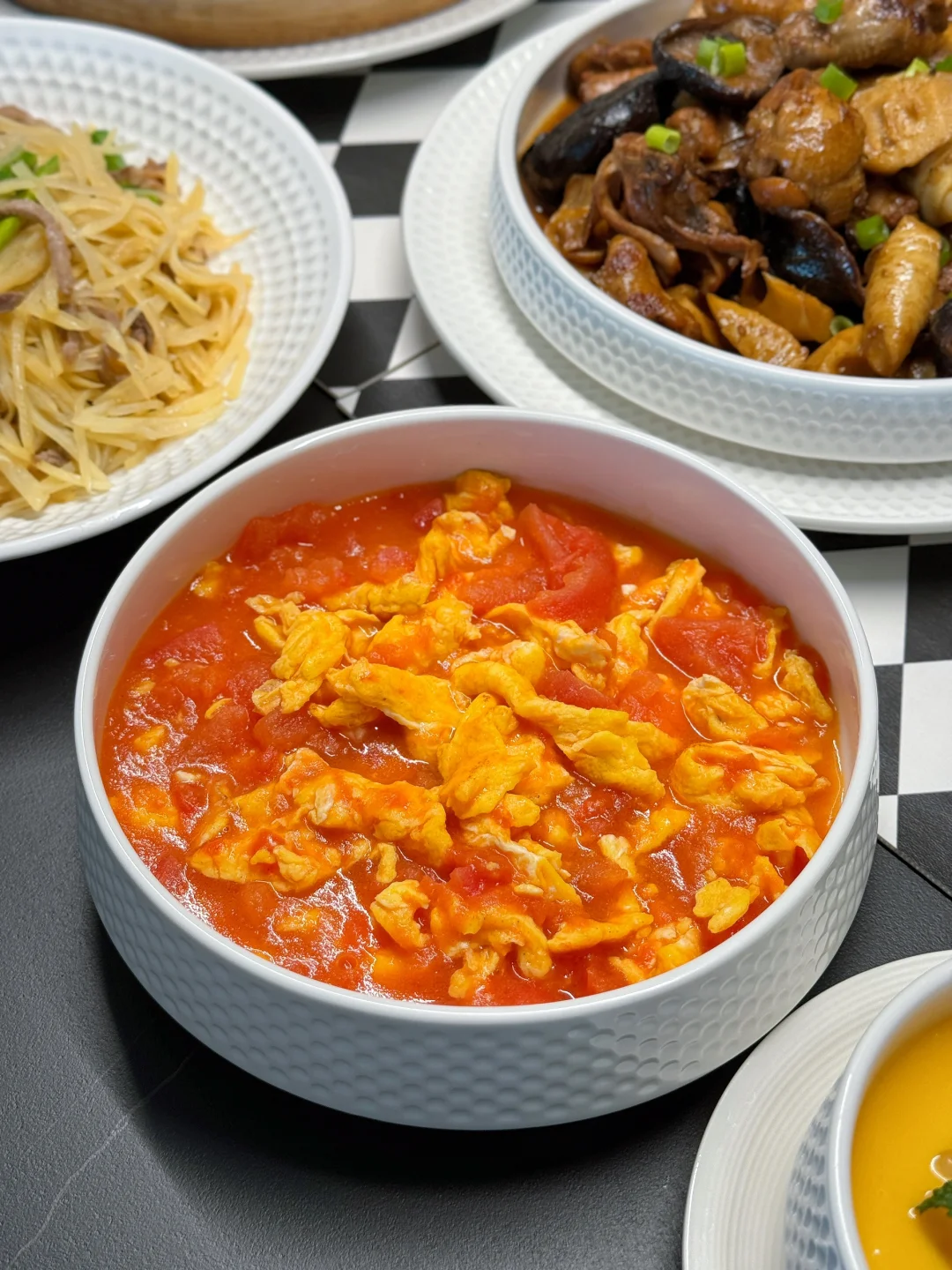 北方的春天来的晚一些,虽迟但到! 阳光明媚 春天就是很治愈的季节[种草R] 【今天菜单】 春笋焖鸡 西红柿炒鸡蛋 剁椒鱼中宝 香菇油菜 土豆丝炒肉 香酥炸鸡翅 烧麦、小笼包 自制杨枝甘露 [彩虹R]儿子想喝的杨枝甘露安排上~ 一个西柚➕一斤半小台芒,够一人一杯了!做法也很简单,需要的宝子们翻👆的教程图呀!