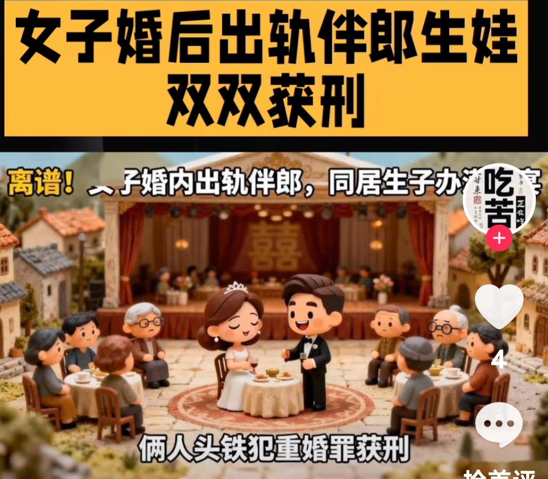 《新婚妻子出轨伴郎生子!法院判了:双双坐牢!》 (开头) "婚礼上的伴郎,竟成了她孩子的爹!" 结婚才第二年,妻子就出轨婚礼伴郎,还以夫妻名义同居生子!近日,这对"婚外鸳鸯"因重婚罪被判刑,案件细节曝光后,全网炸锅——原来重婚真的会坐牢! 1. 案件回顾:从婚礼伴郎到"地下丈夫" ✅ 时间线梳理: 2023年:女子与丈夫结婚,伴郎全程参与婚礼 2024年:女子与伴郎开始婚外情,多次借口"回娘家"实则同居 2025年:女子生下伴郎的孩子,朋友圈晒"一家三口"合照露馅 ✅ 东窗事发: 丈夫发现孩子出生证明父亲栏填的是伴郎名字 调取开房记录发现二人三年内开房达67次 报警后警方查出二人以夫妻名义共同还房贷 2. 法院判决:重婚罪实刑! ⚖️ 判决结果: 女子获刑1年2个月 伴郎获刑1年 二人婚姻关系无效,孩子抚养权归女方 📜 法律依据: 《刑法》第258条:有配偶而重婚的,处2年以下有期徒刑。本案因二人长期同居+生育子女,已构成实质重婚。 "把婚姻当儿戏,必须付出代价!" 3. 网友热议:出轨生子算重婚? 🔥 争议焦点: 没领证也算重婚? ▶️ 法律明确:以夫妻名义同居+对外宣称夫妻即构成 为什么判刑不一样? ▶️ 女方隐瞒已婚事实主导同居,情节更严重 4. 血的教训:这些行为都算重婚! 🚨 高危雷区: 长期同居+对外以夫妻相称(如共同出席亲友聚会) 生育子女且登记为父母 共同购置财产(如联名买房、合开账户)婚后的出轨 重婚过错赔偿