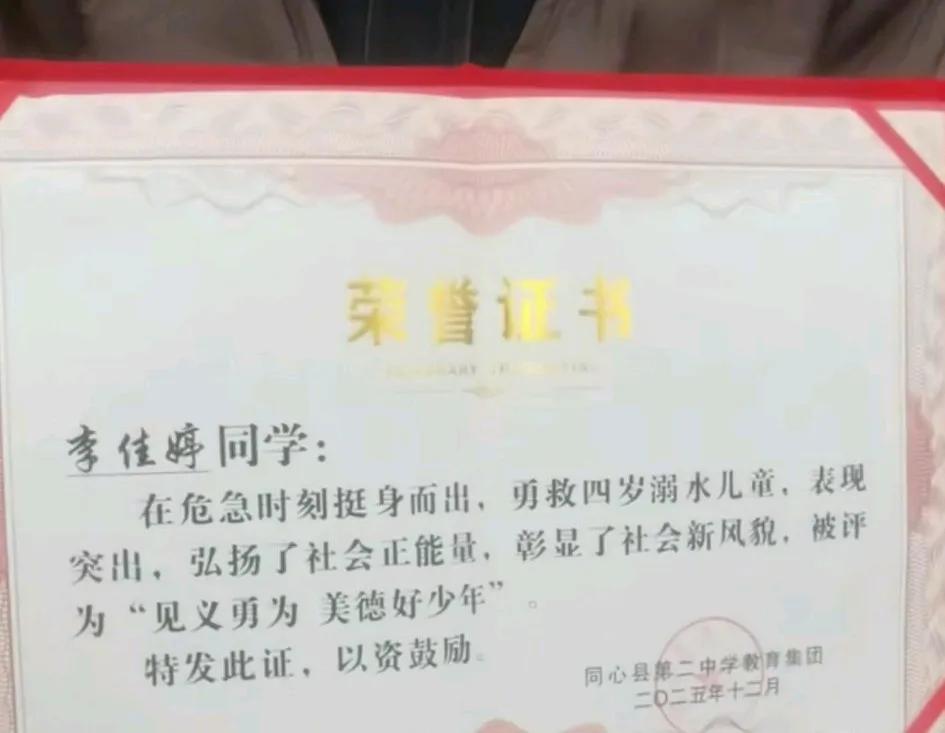 你注意到了吗? “最美小英雄”李佳婷接过荣誉证书的动作,转身、俯身、双手接过证书,教养真的是刻进了骨子里,一眼就能看出来。 近日,李佳婷勇救掉进冰窟4岁男童的事迹在网上疯传。 年仅13岁的李佳婷是初中一年级学生,看到4岁男孩掉进冰窟后,她勇敢地自荐,向救援人员说,“阿姨,我身体轻,我来救!” 李佳婷趴在冰面上,一点一点挪向被困男孩,成功把管子递给男孩,但是冰面太薄了,李佳婷身下的冰面碎裂,整个人掉进冰冷的水里,脖子以下迅速被冰水混合物淹没,最后消防员赶来把李佳婷和男孩救出来。 李佳婷看男孩安全后,没留姓名,默默离开,回到家里,面对湿透的衣服,怕父母担心,说是不小心被洒水车喷到了。 仅仅初一,危难之际就敢于挺身而出,事后又怕家长担心,隐藏救人事迹,太了不得了。 小姑娘不仅心善,长得还非常秀气,成熟,懂事,谁家的姑娘,教育得太好了。
