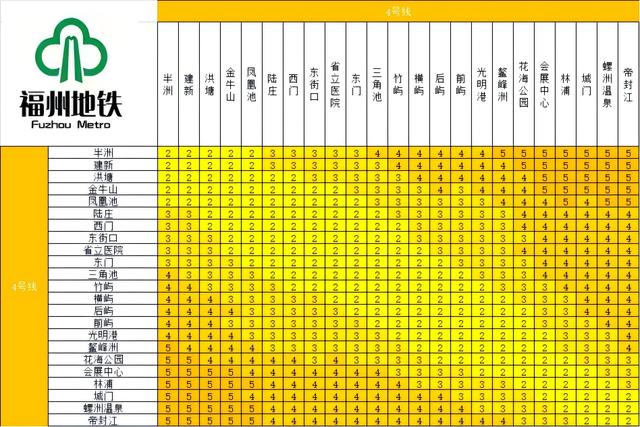 4号线各站点票价表
