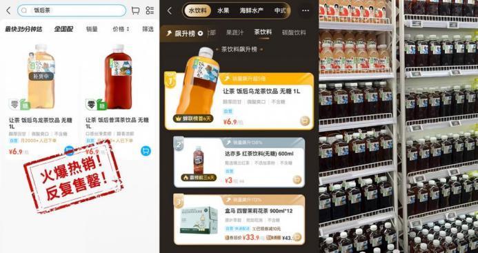 以让茶为例,其芭乐油柑茉莉茶添加了益生元,打出“让茶有益”的产品口号,巧妙切进“肠道无负担”赛道。数据显示,该产品成为“抖音商城双11无糖饮料好物榜”TOP3饮品。同样来自让茶,其“饭后茶”系列则是与盒马联名,将场景锚定到“饭后”,专为火锅、烧烤等重油重味饮食场景打造。饭后普洱传承熟普原本的温性、解腻的功效;饭后乌龙首创添加山楂浓缩液,依托山楂天然果酸强化解腻效果;为消费者提供餐后饮品新选择。