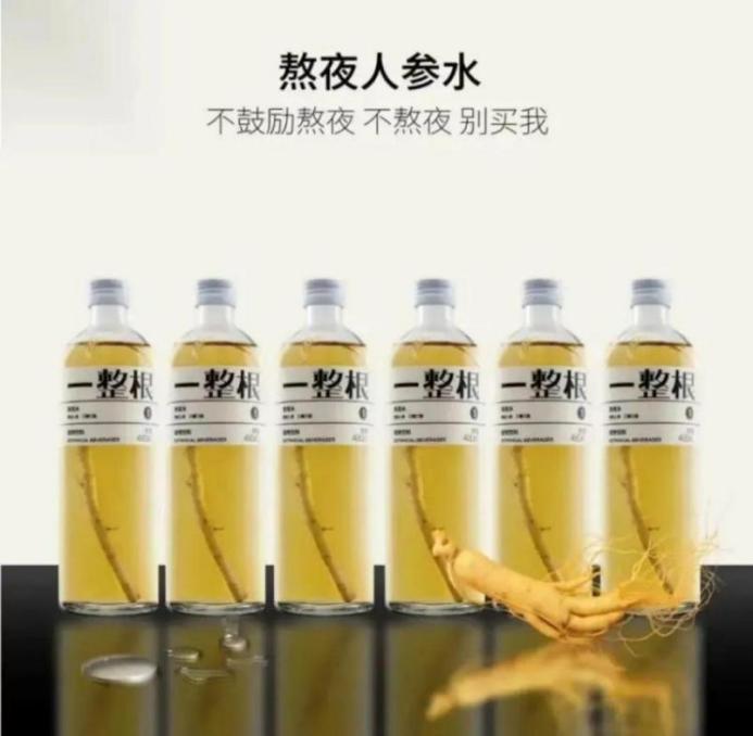 当视线转向“办公/学习场景”,解决的则是“午后困倦、效率低下”乃至“熬夜损耗”的复合型痛点。品牌的解决方案也从简单的提神,扩展到提供“能量补给”与“疲劳修复”。果子熟了推出的“超柠”系列,以高含量维生素C和牛磺酸直接对标需要快速提振精神的时刻;此前引发热议的“一整根”人参水,更是以“熬夜水”的鲜明定位出圈,直击年轻人在高压工作学习后,希望通过饮品进行“滋补回血”的心理需求。