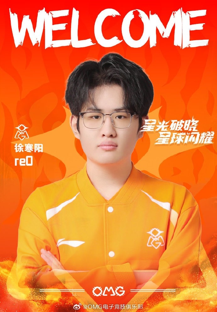 OMG电子竞技俱乐部英雄联盟二队打野选手OMG.re0(徐寒阳)正式加入一队,开启职业生涯的新篇章。