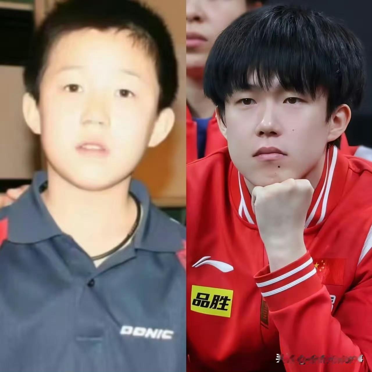 都说老天爷赏饭吃,看王楚钦就知道!东北老话里的“前ber喽后勺子”大脑门,本就是机灵的象征,放在他身上更是精准应验。 童年的他圆脸蛋甜笑,镜头感拉满,摆起pose俏皮讨喜;如今褪去稚气,内双大男孩穿起正装,举手投足尽是成熟稳重。 运动员的挺拔精气神,搭配出众的身高颜值与独特气质,王楚钦不管什么造型都能轻松拿捏,魅力直接溢出屏幕!