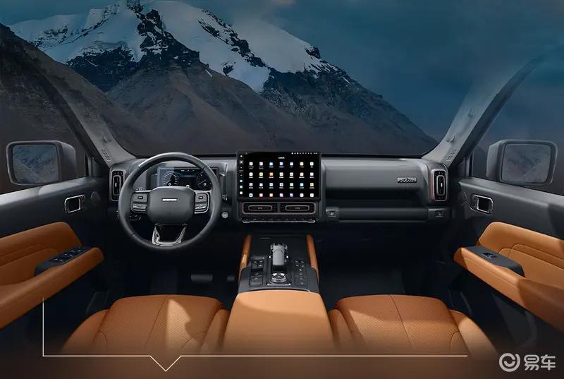 外观方面,新车整体设计基本延续在售车型,新车采用灰色车漆,搭载前射灯、侧爬梯、车顶平台、全黑六辐式轮辋和AT胎,涉水深度可达800mm。此外,新车还标配2.5吨拖车资质,房车、摩托、UTV都能拖。