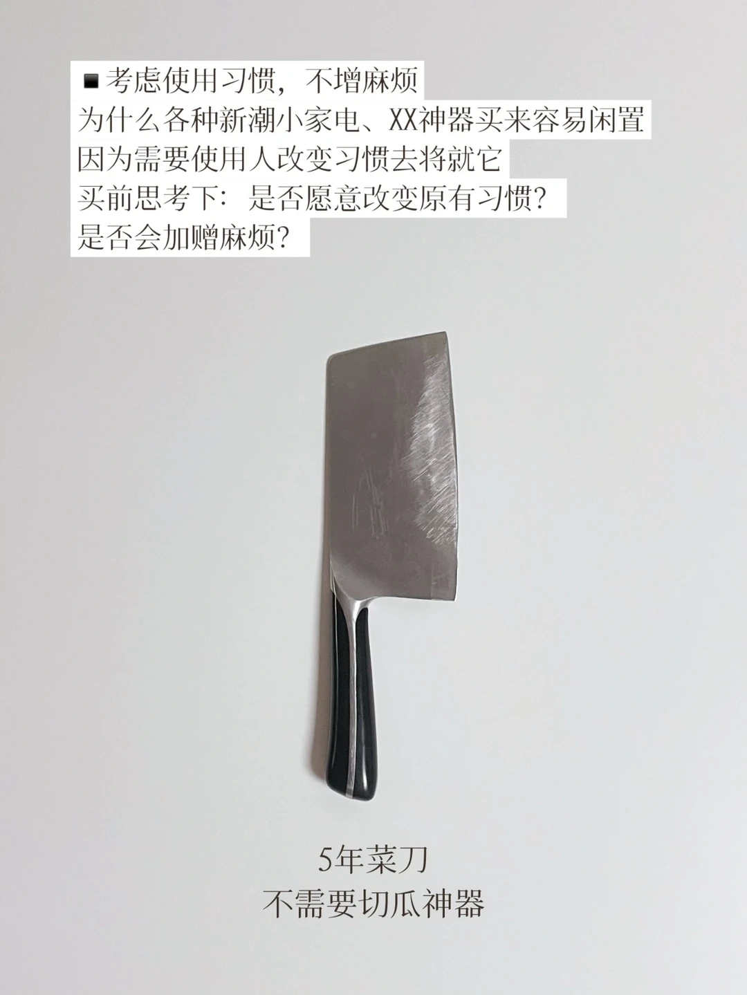 新潮小家电、XX神器买来容易闲置,因为需要使用人改变习惯去将就它。买前思考:是否愿意改变原有习惯?是否会加赠麻烦?
