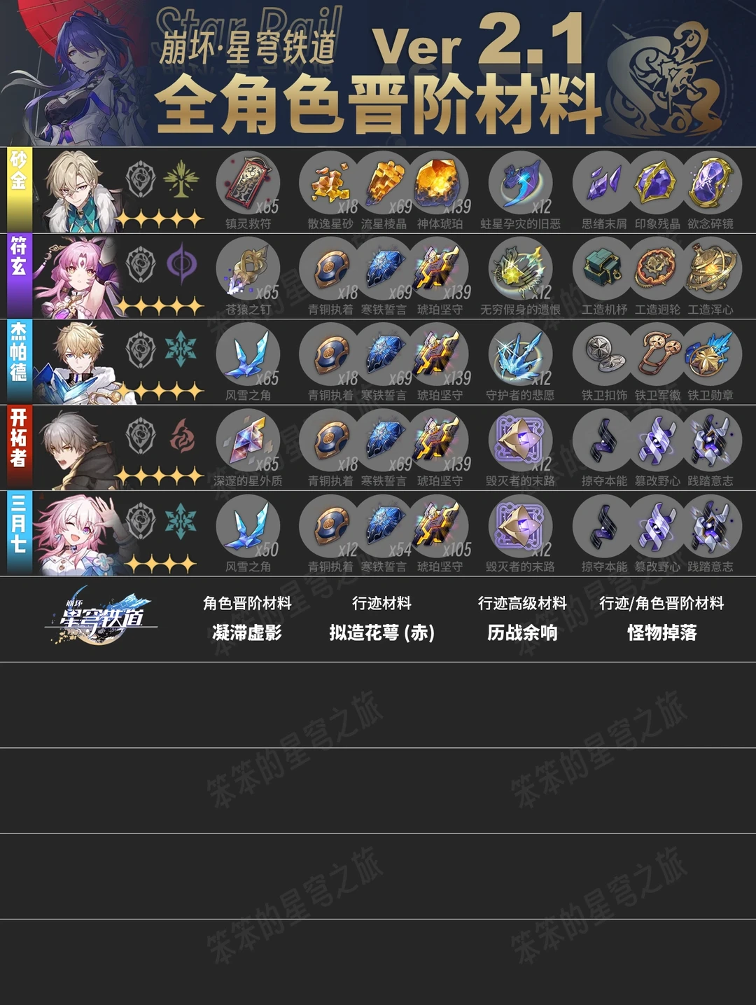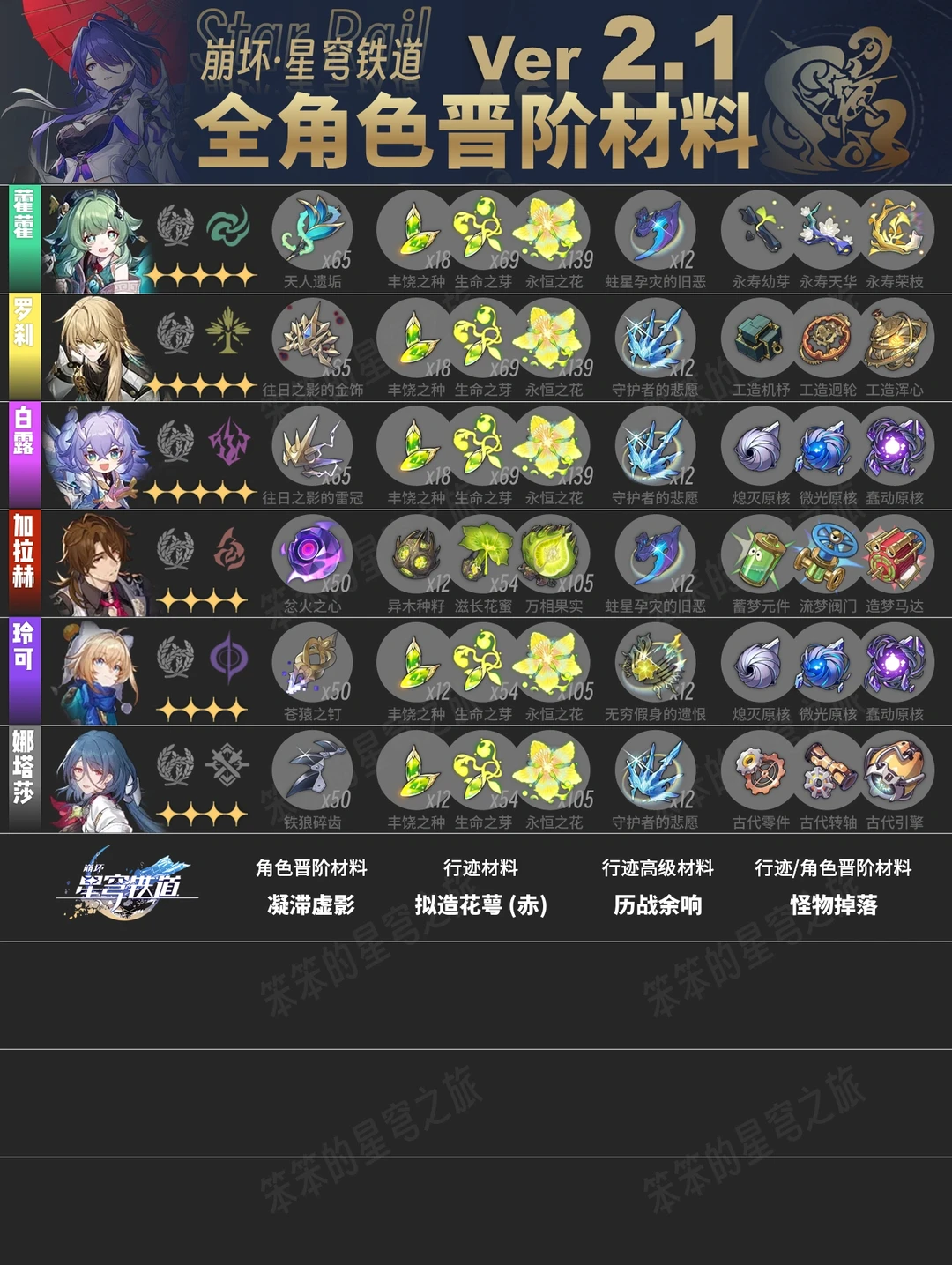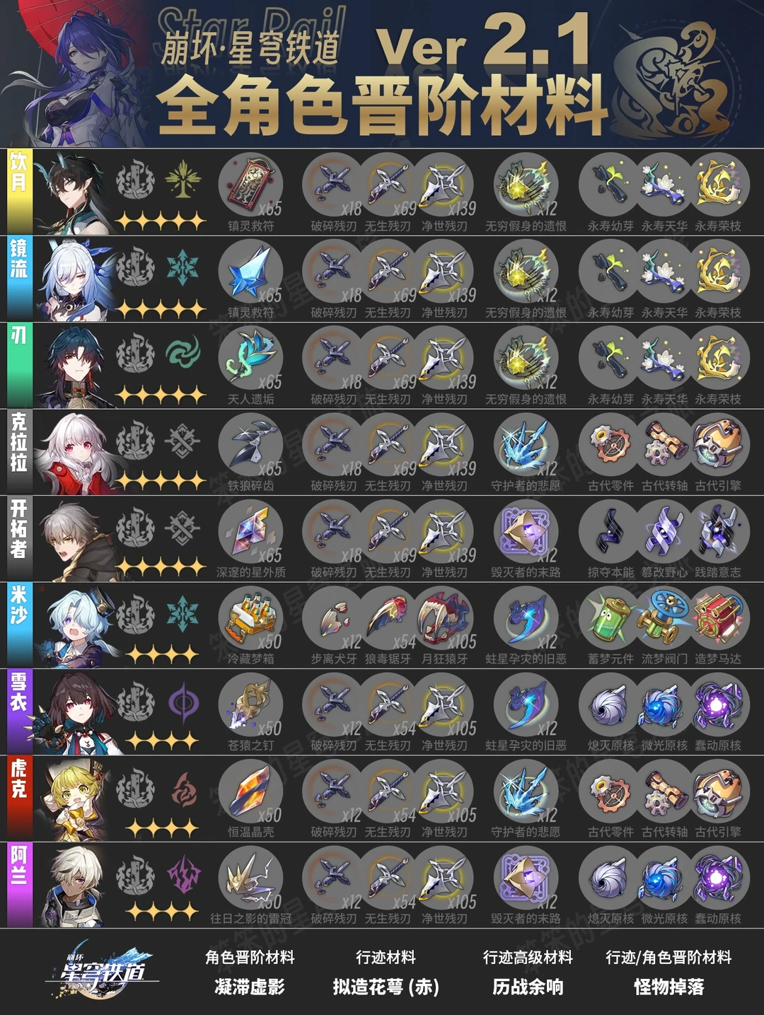 截至V2.1全角色晋阶材料合集,爆肝整理📂