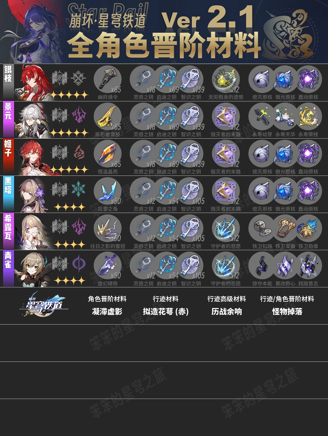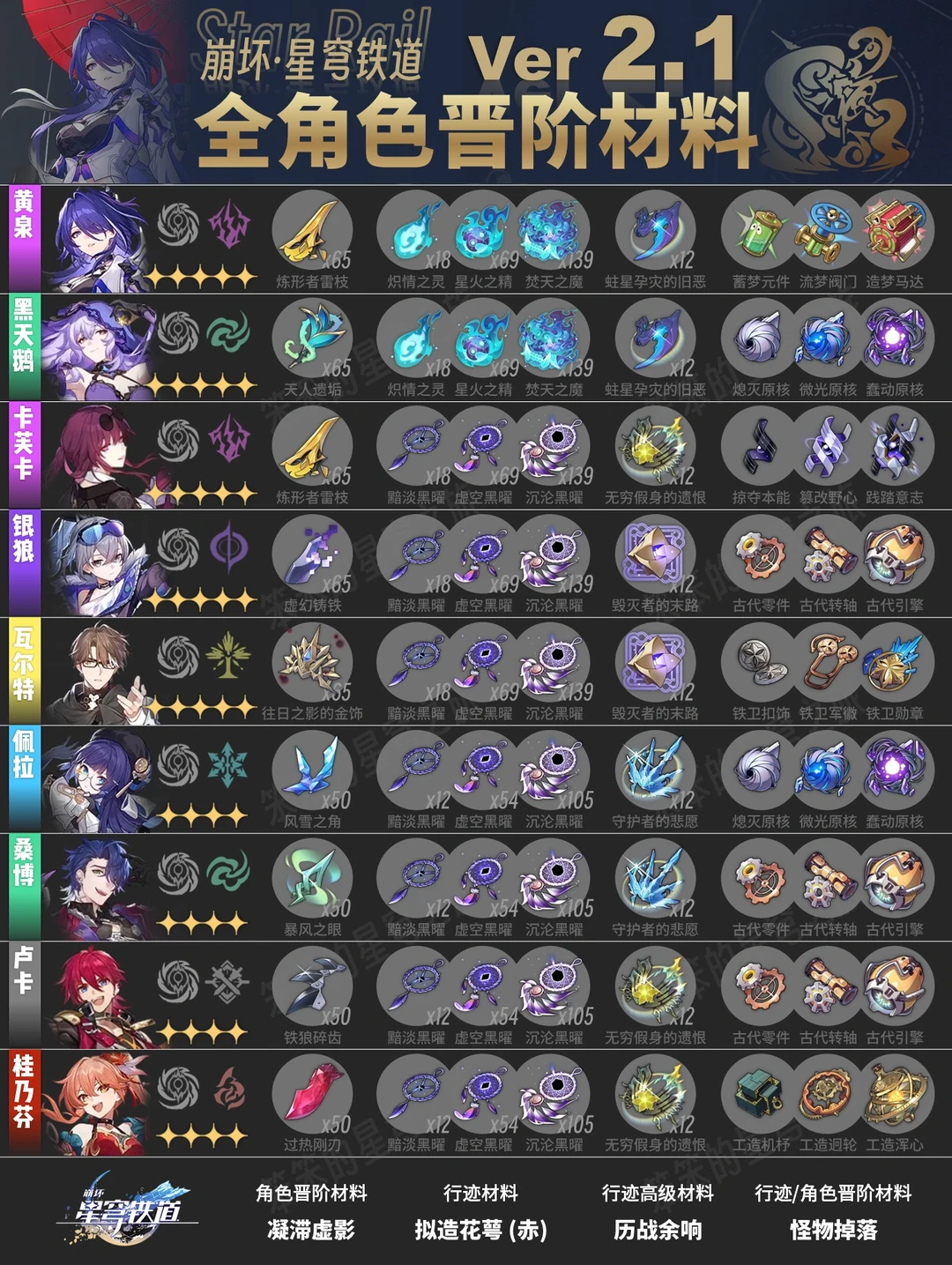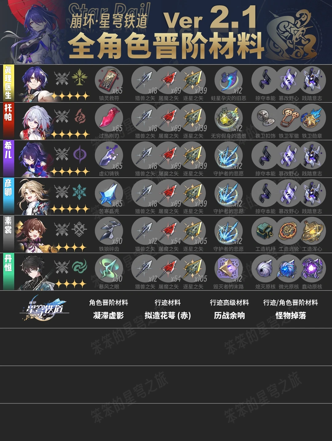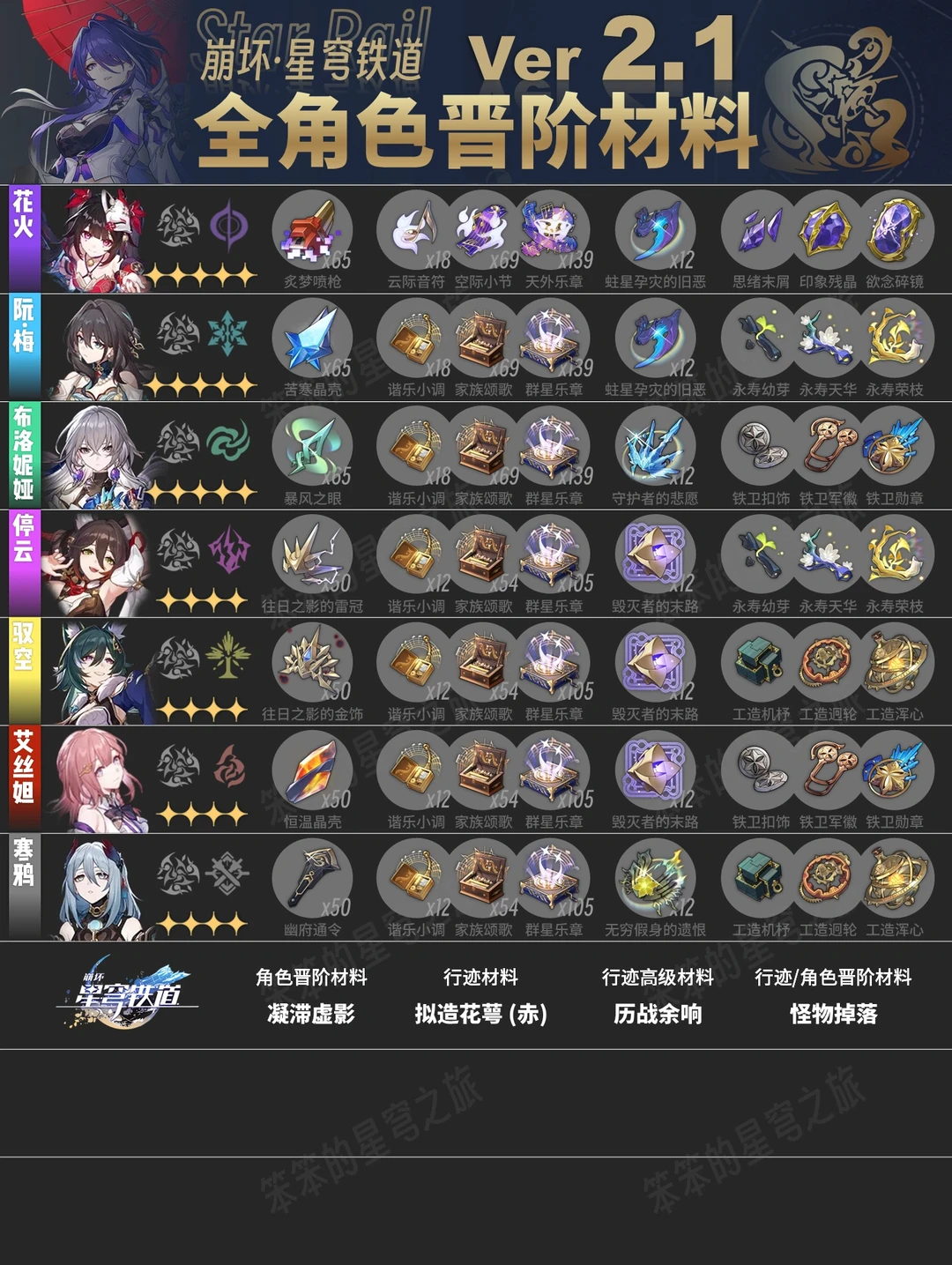 截至V2.1全角色晋阶材料合集,爆肝整理📂