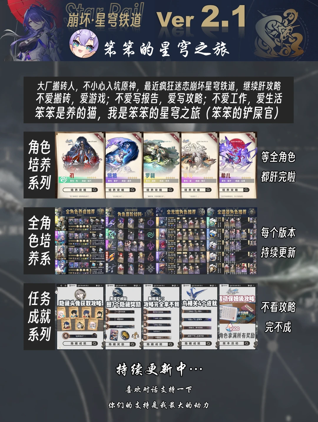 🐱大家好,我是笨笨的铲屎官 今天给大家带来的是全角色的晋阶材料 爆肝整理,值得收藏 ------------------------------ 👉笨笨整理了截至2.1版本全角色的晋阶材料 包含2.1前瞻已经公布的三个新角色 黄泉、砂金、加拉赫 合计一共42个角色(含开拓者两种属性) 💡大家看完前瞻直播,都打算抽什么角色 有想抽的角色可以趁着双倍,提前准备起来哦 如果喜欢的就支持一下吧