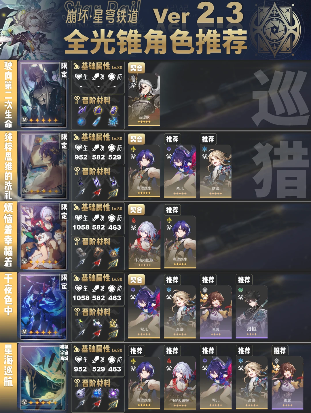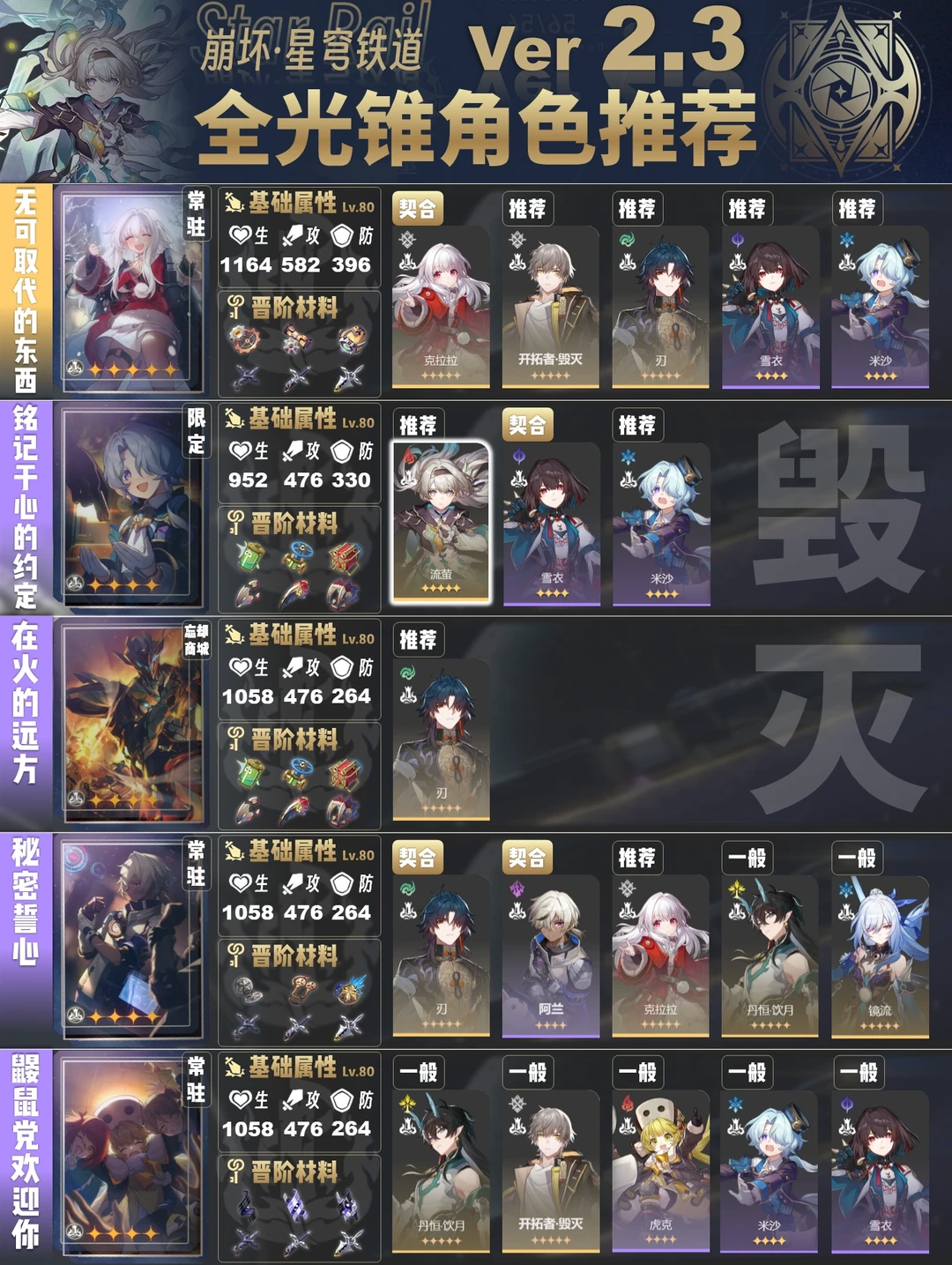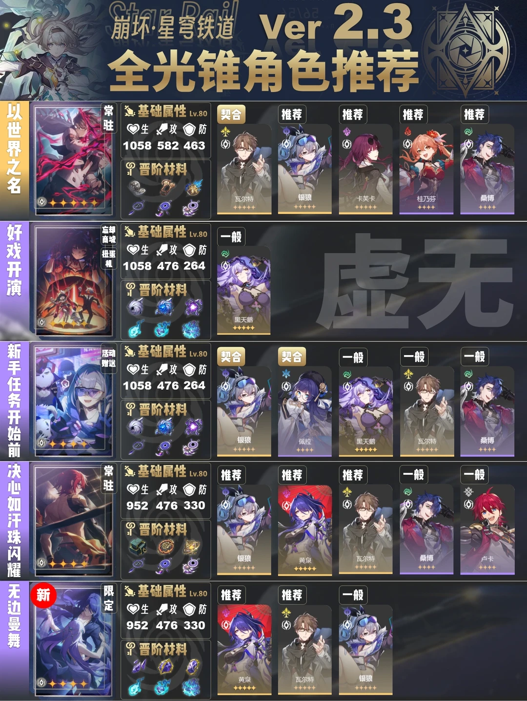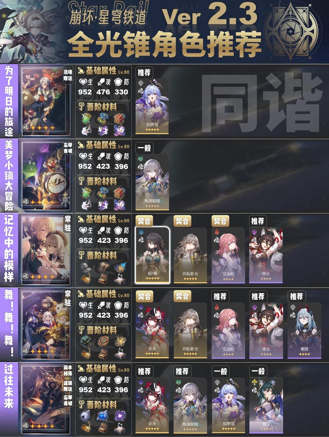 适合虚构叙事,大部分攻击、增伤、双暴光锥都可用