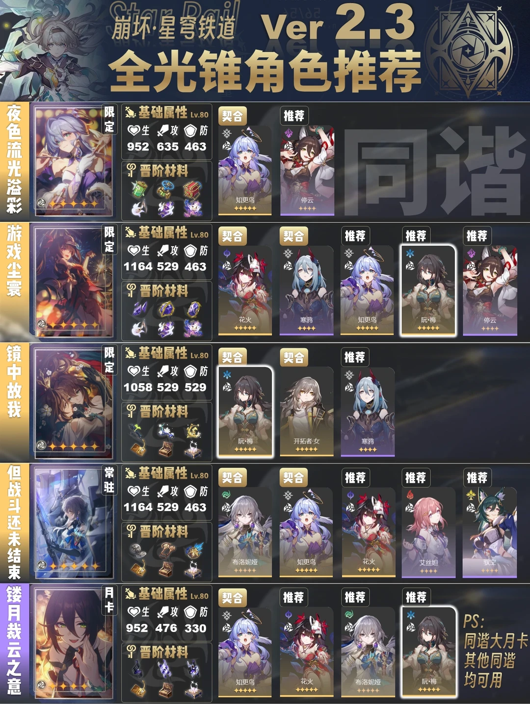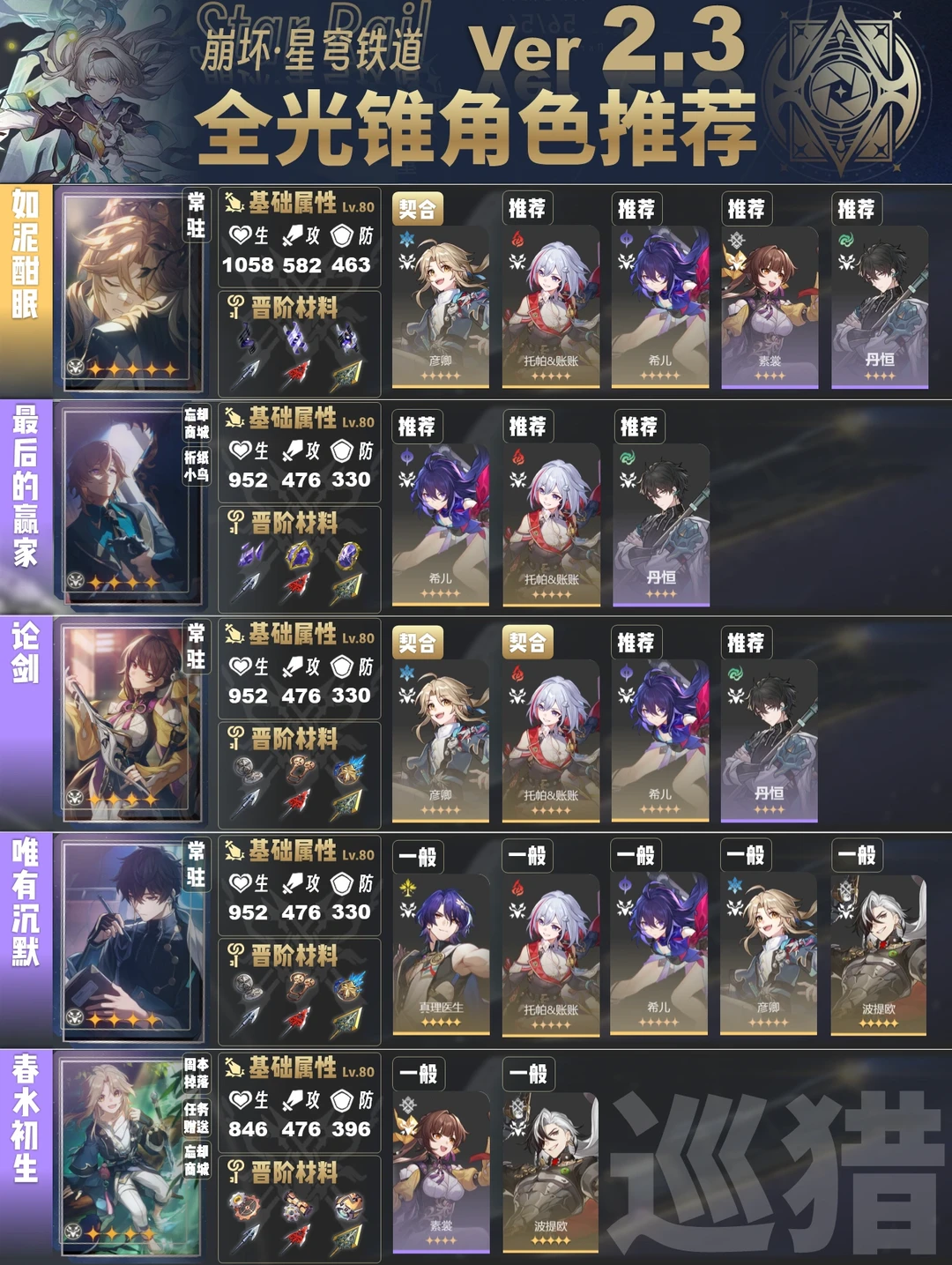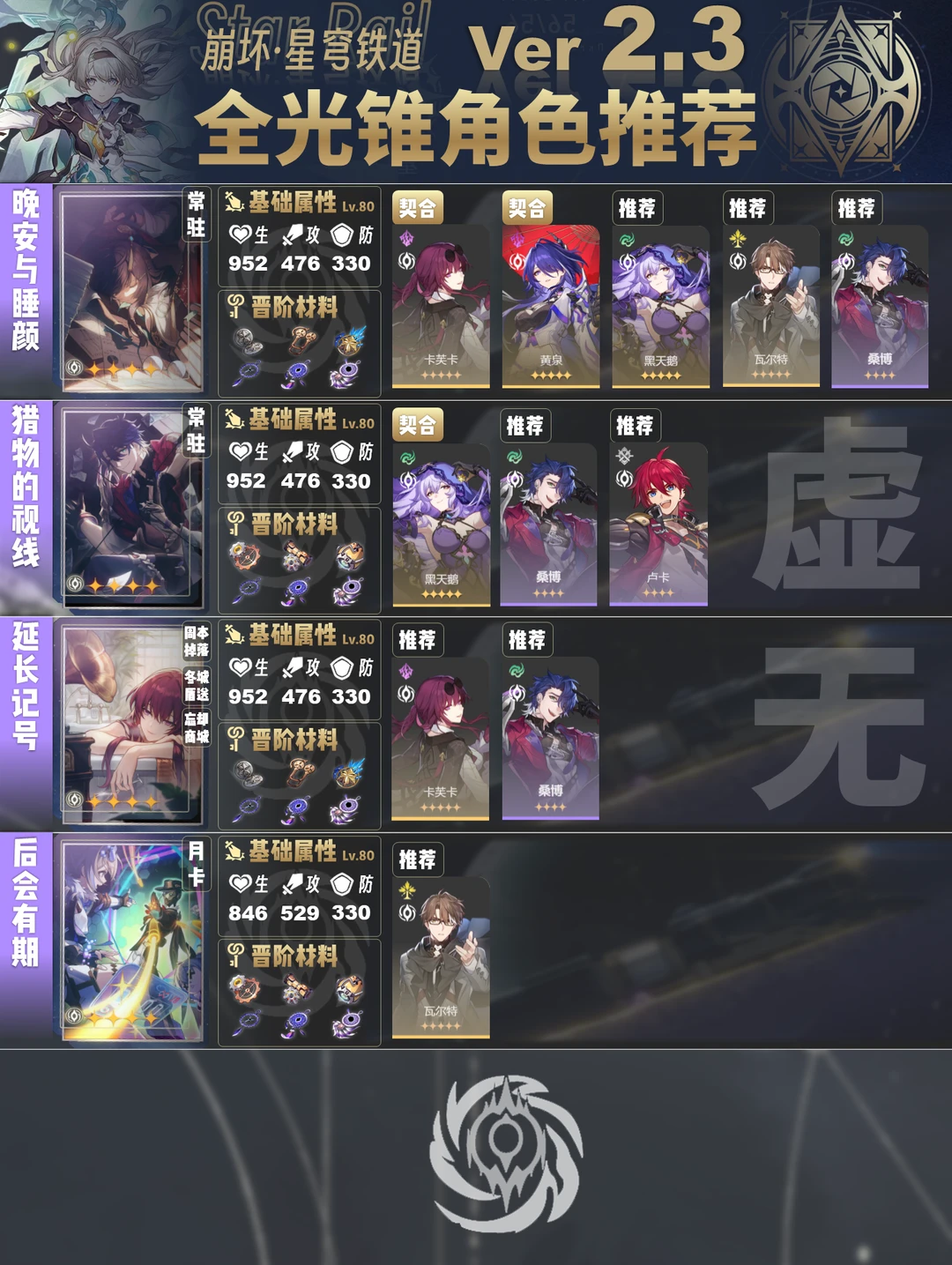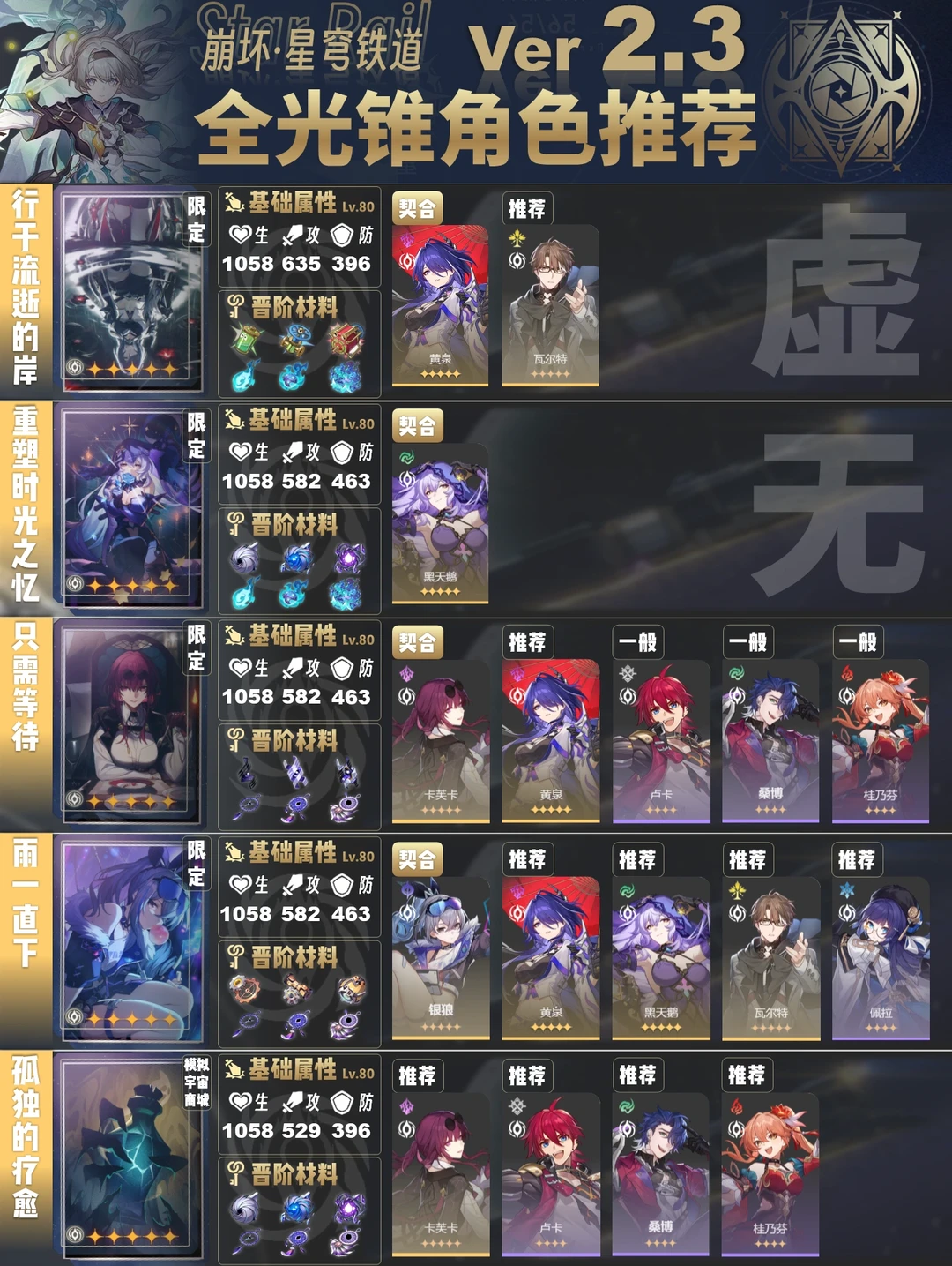 适合虚构叙事,大部分攻击、增伤、双暴光锥都可用