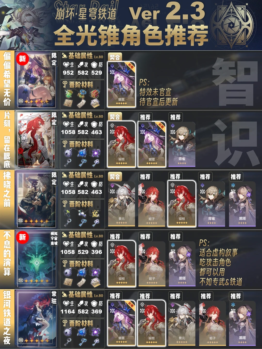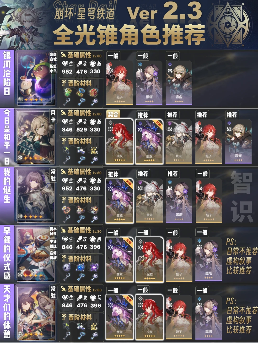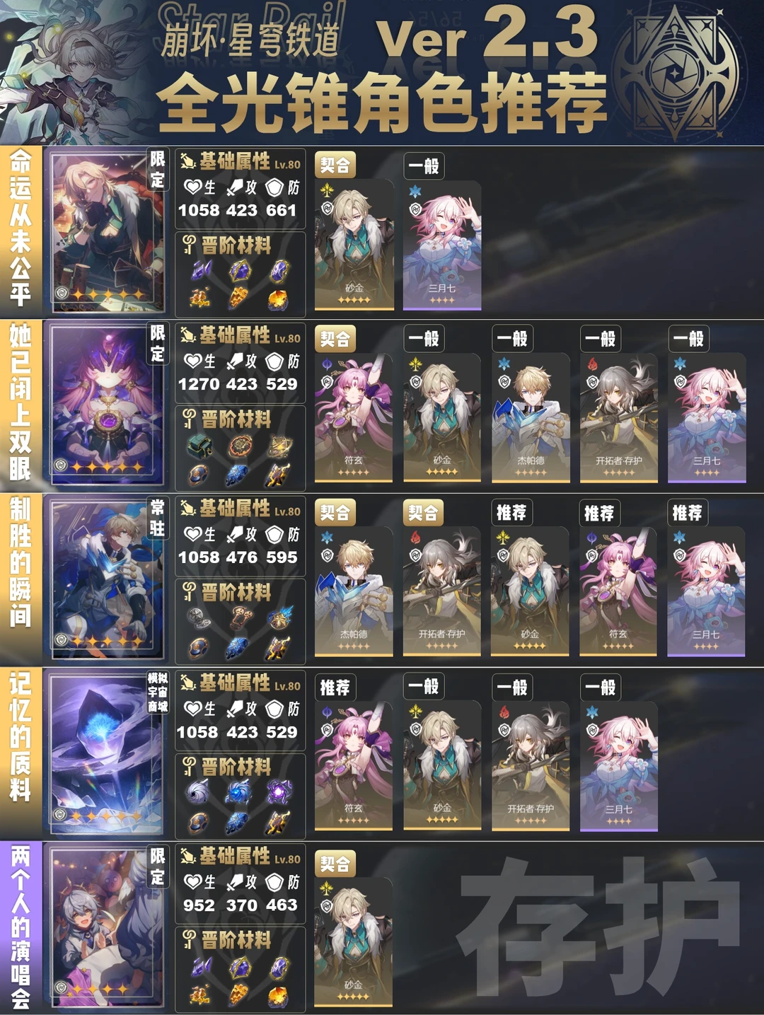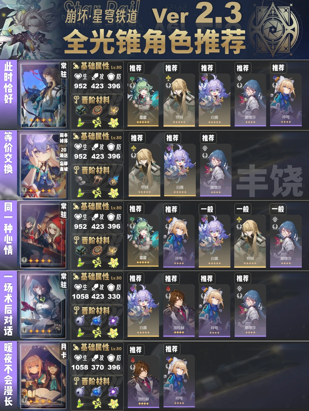 适合虚构叙事,大部分攻击、增伤、双暴光锥都可用