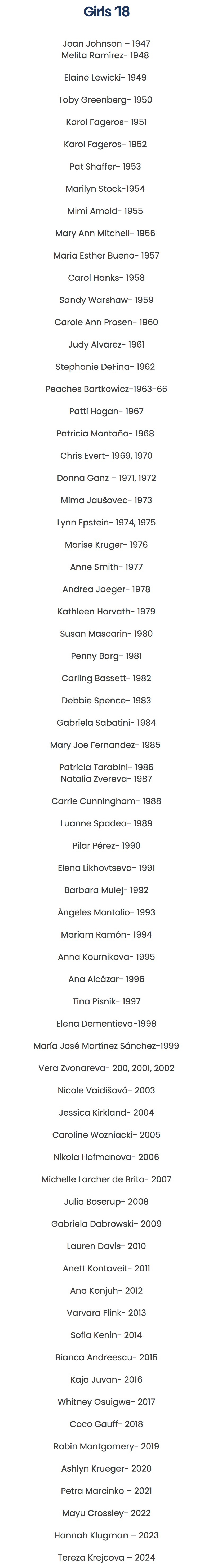 🍊橘子碗U18组历届单打冠军名单如图,成材率还是很高的,期待孙心然以后的表现10后中国小将夺橘子碗女单冠军 👨🏆男子著名冠军:费德勒、罗迪克、索德林、博格、麦肯罗、伦德尔、考瑞尔、梅德韦杰夫(乌)、科斯塔、马苏、蒂姆、蒂亚福、凯茨曼诺维奇、菲斯👩🏆女子著名冠军:萨巴蒂尼、德门蒂耶娃、兹沃娜列娃、瓦伊迪索娃、沃兹尼亚奇、康塔维特、康纽、肯宁、安德莱斯库、高芙、克鲁格