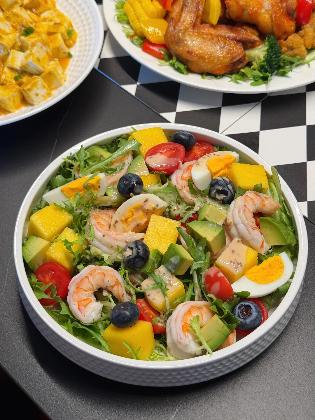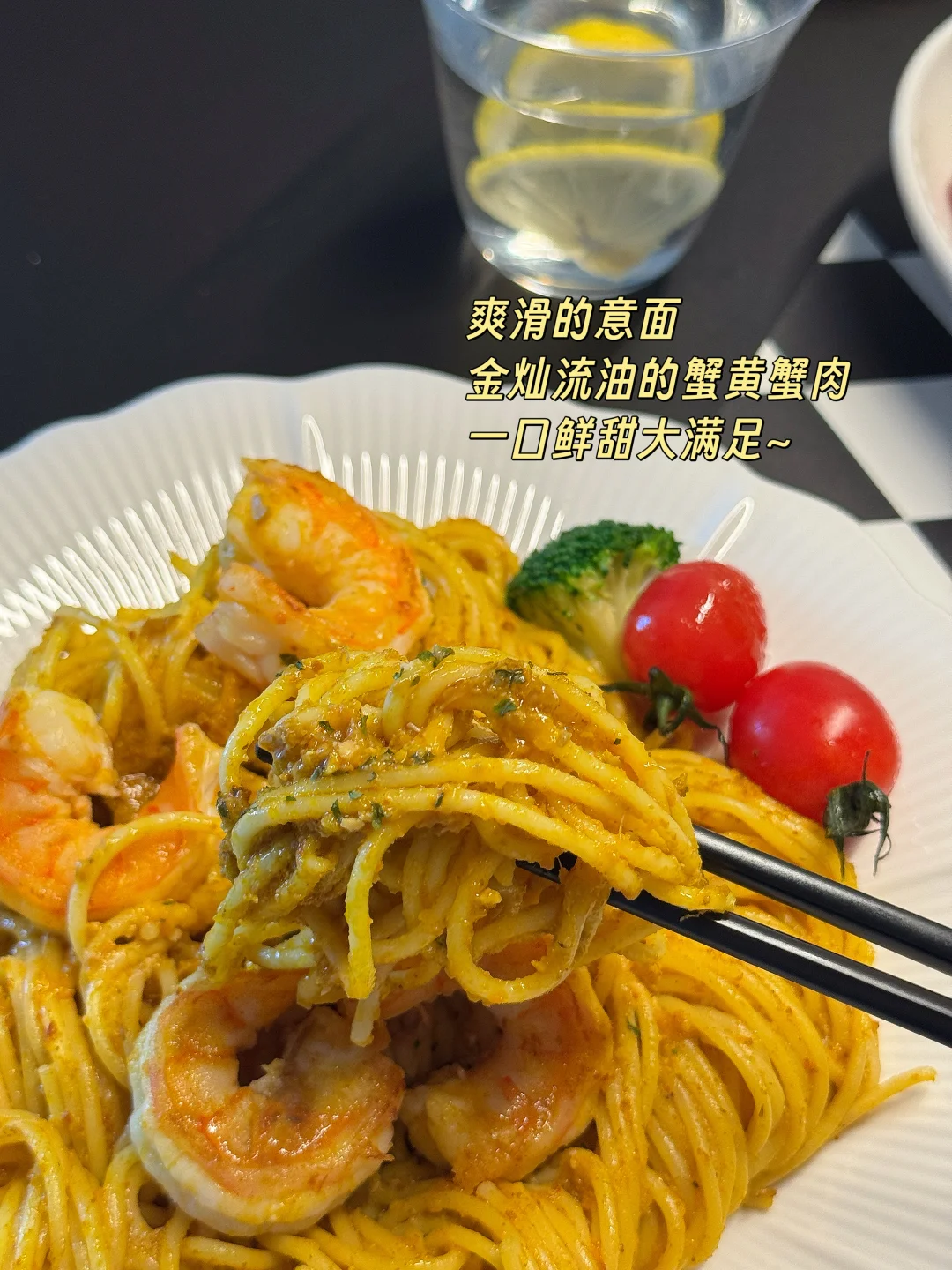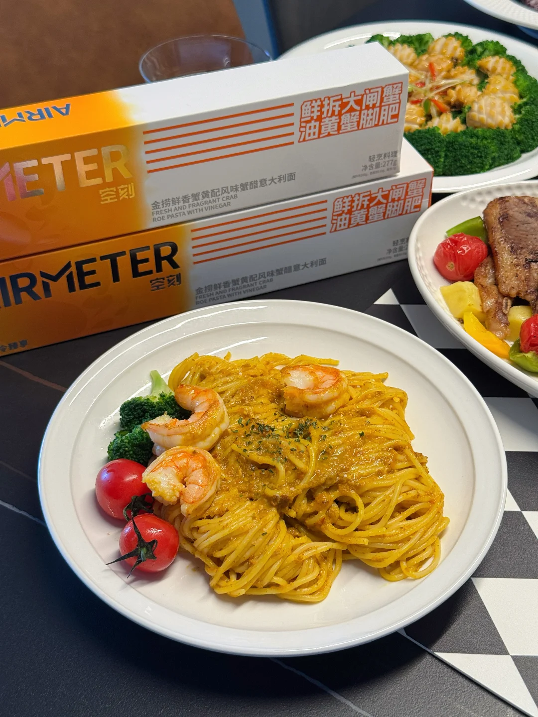 [庆祝R]今日家宴菜单: 蟹黄意面 香煎战斧小羊排 时蔬炸鸡 蟹黄豆腐 虾仁芒果沙拉 葱油鲍鱼西蓝花 蓝莓山药 [集美R]我请客,我下厨! 酥脆的炸鸡、劲道的意面、清爽的沙拉还有餐后小甜品~两小时搞定今天这一桌仪式感满满的秋日家宴! 🦀不用剥蟹、不用熬酱就能吃到爽的空刻蟹黄意面,煮面10分钟➕拌酱2分钟,轻松解锁星级餐厅级的蟹黄暴击~料足到感人,160g酱包里能吃到真实蟹肉碎,金灿灿的蟹黄油裹着Q弹的意面,每一口都带着真实蟹肉的鲜甜!搭配上特调蟹醋解腻提鲜一点也不腥呢 大人小朋友都爱吃!