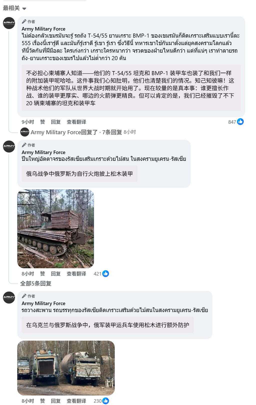 🔻泰国战争奇景:VT4+竹子装甲。🔻来自泰国军事媒体的分享(图1-14)。🔻泰国人说柬埔寨也这么干,俄国人也这么干(图15-16),🐵也这么干(图17)。热点现场海外新鲜事