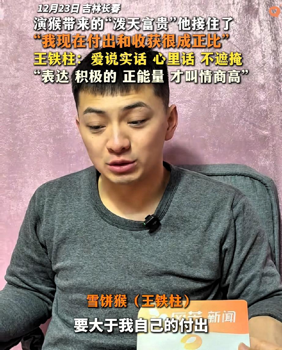 雪饼猴王铁柱这波回答,才是高情商的天花板 被问月薪多少时,雪饼猴王铁柱一句“收获大于付出,生活很满足”,直接把高情商三个字焊在了脑门上。 他坦言怕热度褪去,毕竟审美疲劳是人之常情,还直言自己性子直,演出舒服就开心,不得劲就难受,从不会藏着掖着。 在他眼里,真正的高情商从不是圆滑客套,而是把积极正向的心里话实实在在说出来。 这份通透和真诚,远比那些华丽的辞藻更打动人。 网友说看两年都没腻,反而越来越喜欢,其实喜欢的哪里是舞台上的他,更是这份不装不端的真实。 这年头,这样清醒又真诚的人真的不多见了,你们被铁柱的回答圈粉了吗?