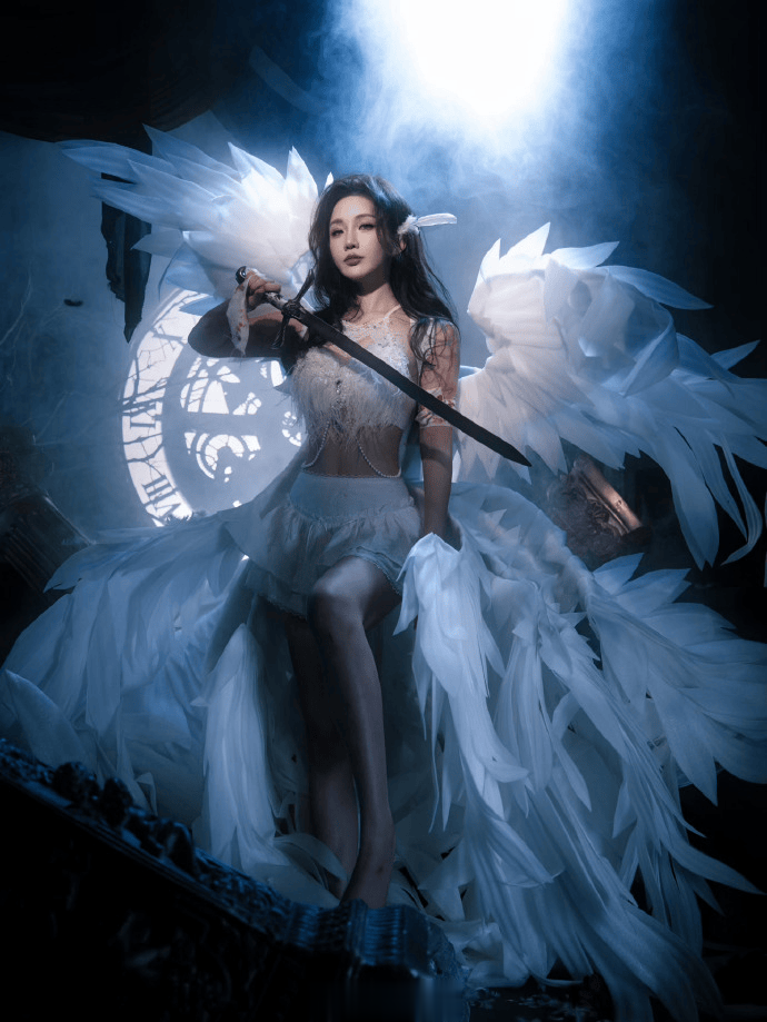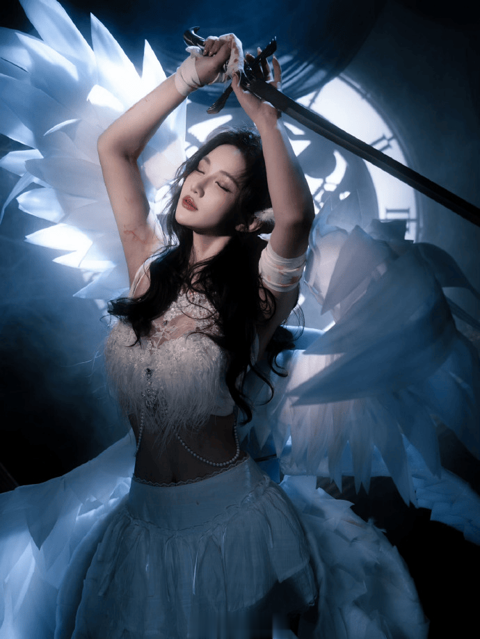 虎扑12月24日讯小鹿发布写真“战斗天使”:每个女孩心里一半洁白一半勇敢