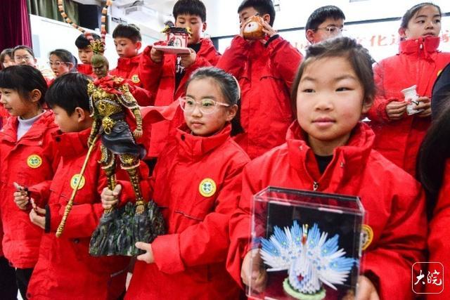 记者在现场看到,学生们对众多非遗作品非常感兴趣,一边观察,一边询问这些作品是怎么制作的?