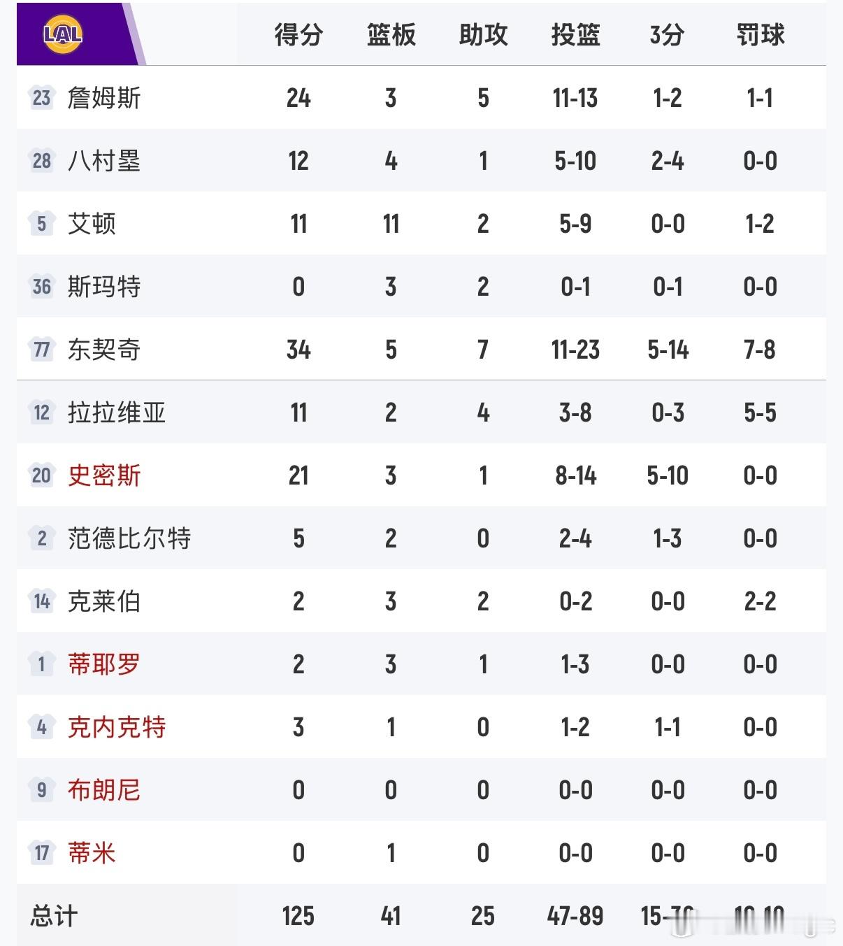 湖人125-101国王,终结三连败,如何评价本场比赛?东契奇34分5篮板7助攻3抢断詹姆斯13投11中砍下24分3篮板5助攻2抢断尼克史密斯21分3篮板