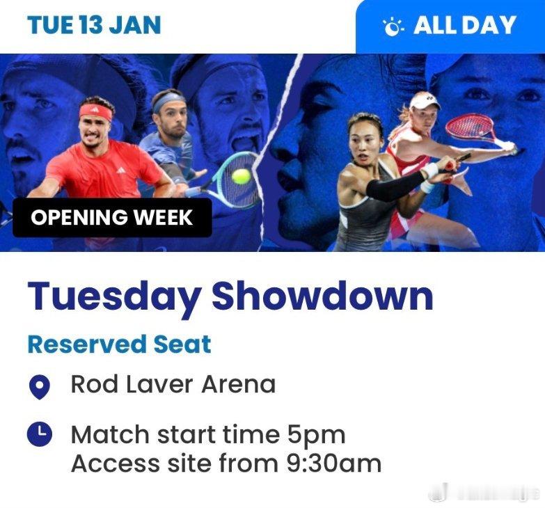 澳网官方消息,郑钦文和莱巴金娜的表演赛将于1月13日14:00在罗德拉沃尔球场打