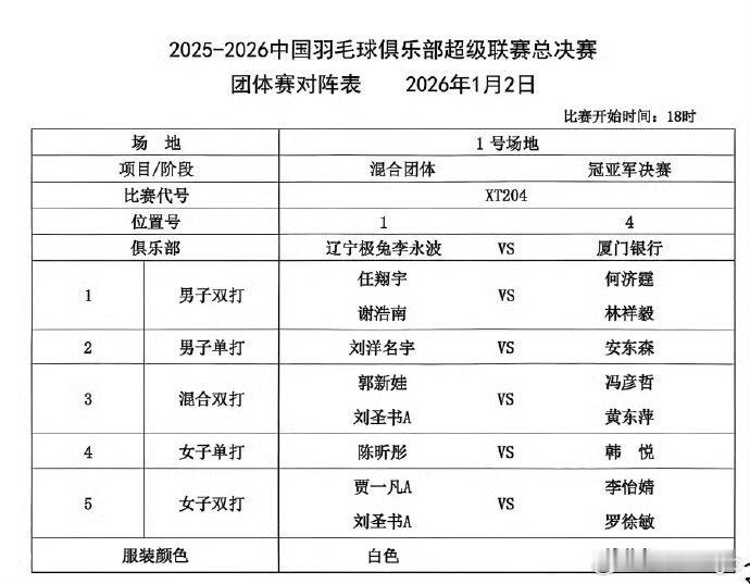 11:00三四名决赛 青岛仁洲vs浙江竞体18:00冠亚军决赛 辽宁极兔vs厦门银行锁定今日赛程,一起见证2025-2026羽超联赛冠军诞生!