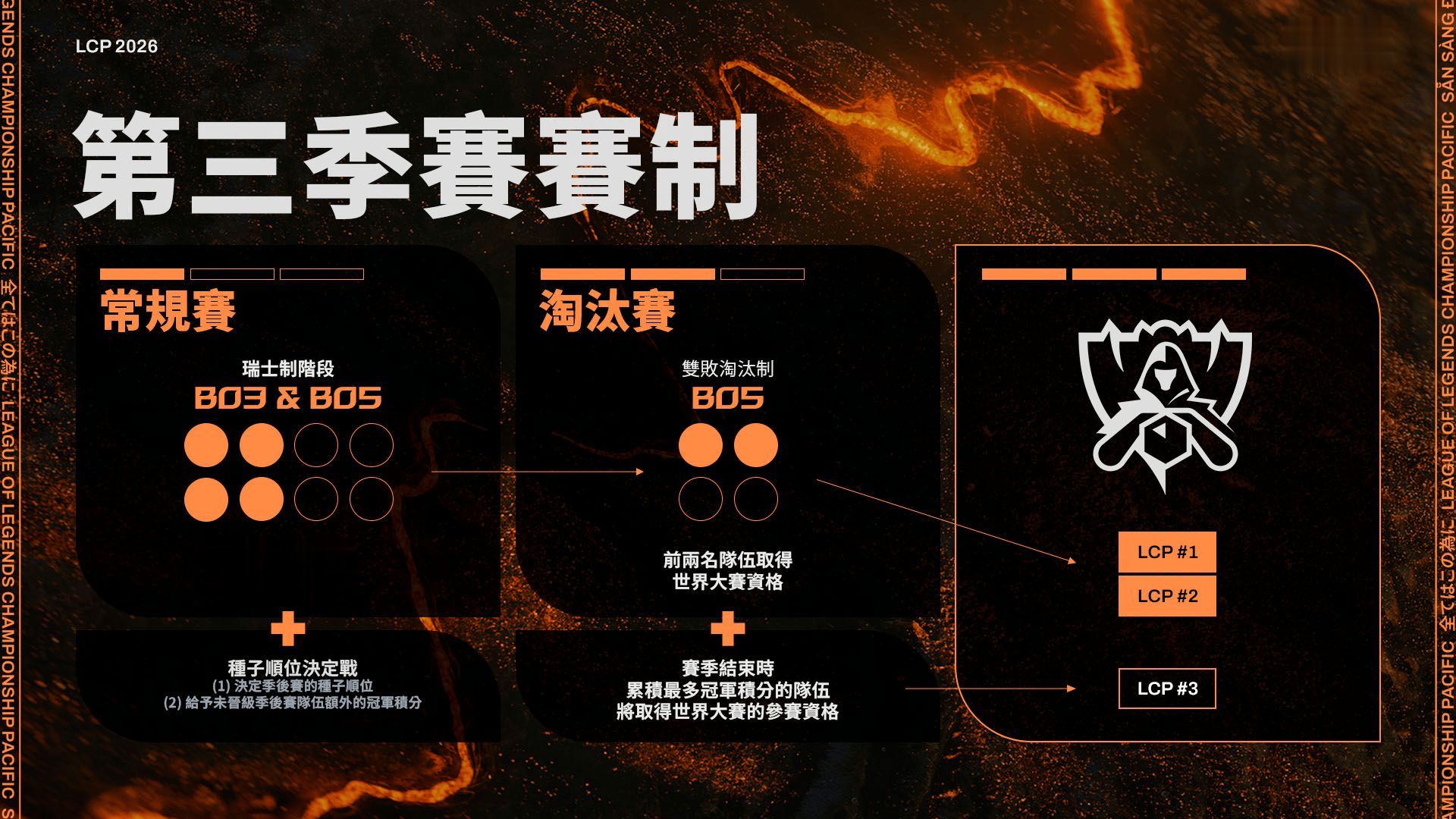 第一第二赛季赛制一样,常规赛单循环BO3,淘汰赛BO5