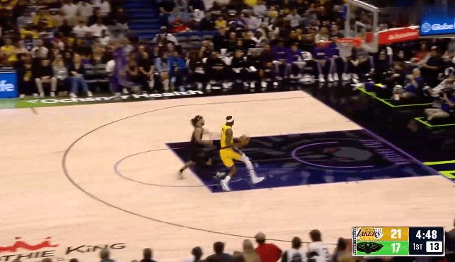 范德比尔特上场后抢断反击上篮打进,湖人首节领先鹈鹕6分