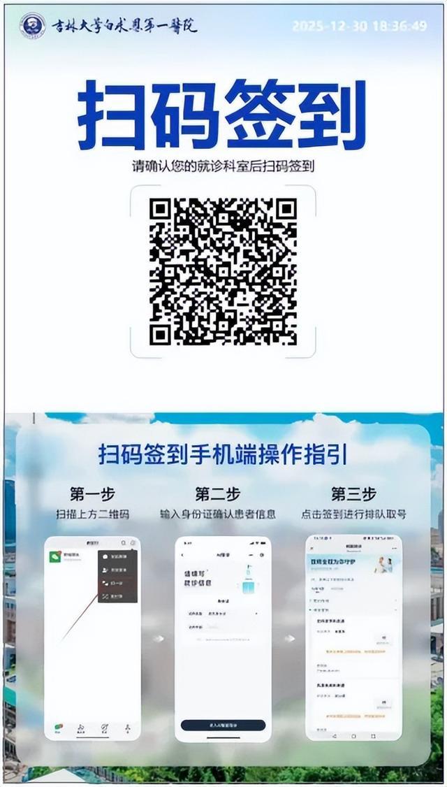 吉大一院在门诊大厅、诊室、检查室、缴费窗口等关键就诊环节,均设置醒目的官方微信公众号二维码标识。患者扫码关注并绑定就诊人信息后,即可通过手机一站式完成挂号、缴费、医保结算、报告查询、预约改约等全流程操作,真正实现“一机在手,全程无忧”,大幅减少了线下排队等待时间,让就医流程更简洁、更高效。