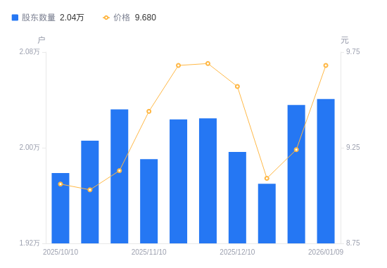近一年(2025年1月10日至2026年1月9日),吉大通信A股股东户数从2.24万户,减低至2.04万户,降幅8.89%,区间股价上涨17.68%。