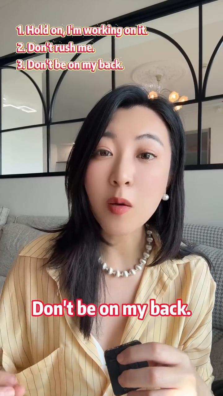 别催我了用英语怎么说? 别催我了用英语要怎么说?你是不是第一反应是Don't push me或者Don't hurry me?这些表达听起来都比较中式,因为语气太重太直接了。来学几个地道表达,语气从轻松到强烈都有。 ·如果你想表达那种别着急,我正在做,语气依旧是耐心的,但是希望对方不要再催你了,这个时候你可以说:Hold on,I'm working on it.(别急,我在弄!)。当然你可以把前面的hold or换成chill,更加口语化一些。Chil,I'm working on it. ·如果你真的是被催烦了,带有情绪了,就可以说:Don't rush me.rush这个词本身就带有赶紧做某事的意思。比方说你跟对象两个人准备出门,你一直在收拾,他就一直在旁边催,能不能快点走,干嘛了?这个时候你就可以说:Don't rush me.I'm almost ready!(别催我!我马上就好了!)。 ·如果你是带了一些抱怨想去表达,别老盯着我/催我,行吗?别催催催催了,这个时候你可以说:Don't be on my back.是一个非常有画面感的表达,就好像一个人他整天站在你身后不停地催你做事儿一样。比方说:You've been on my back all day.I'll get it done!(你一整天都在催我,我会做的!)。 ·再来一个语气最强的,就是表达那种你再催我,我就跟你急眼的那种感觉。我们可以说:Stop breathing down my neck!这个也是非常画面感的表达了,字面意思是指别在我脖子后面喘气儿。这个好像就是有一个人他不仅站在你身后,而且好像这个人就在你身后一厘米,就感觉你能够感受。呼吸一样无时无刻的不在盯着你,不在催着你。举个例子,你的老板总是在盯着你,总是在催着你,这个时候你就可以说:I can't workif you keep breathing down my neck(如果你一直这样催我,我就没法工作了。)。 我是在英国教英国人学英语的爱丽丝,关注我学习更多英语干货。