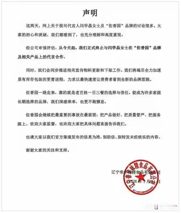 闫学晶被禁关注:一句“哭穷”,扯下了明星与普通人的隔阂 从荧幕上接地气的“山杏”,到直播间里抱怨儿子几十万收入不够花的母亲,闫学晶的口碑一夜崩塌,多个平台账号被禁止关注,合作十年的品牌也火速切割 。这场风波的核心,从来不是明星收入高低,而是公众人物对普通人生活的漠视,终究会被现实反噬。 闫学晶的争议言论,戳中了大众最敏感的神经。她直言儿子一年挣几十万“无法维持家庭运转”,百八十万才够开销,却忘了对绝大多数普通人而言,几十万是数年的积蓄,是养家糊口的底气 。靠着“朴实亲民”的人设立足的她,一句脱离现实的抱怨,瞬间撕开了人设的伪装,让观众感受到的不是母爱,而是居高临下的优越感。 更让网友不满的是,风波发酵后,闫学晶始终未正面回应核心质疑,反而有疑似怼网友“酸黄瓜”的旧料被翻出,进一步激化了矛盾 。而这场舆论风暴,也迅速波及她代言的佐香园、统厨等民生品牌。网友涌入品牌直播间抵制,企业无奈停产换包装,十年合作一朝清零,连品牌负责人都直言“再也不请明星代言” 。 其实,大众对明星的包容度从未降低,却容不得“何不食肉糜”的傲慢。佐香园、统厨这类调味品品牌,赢在贴近烟火气,消费者买的是产品,更是对品牌“懂生活”的信任。当代言人的言论背离了普通人的生活体验,这份信任便荡然无存。 从账号被禁关注到品牌解约,闫学晶的遭遇给所有公众人物提了个醒:脚下的土地永远是普通人,忘了本,就注定会被市场抛弃。而对品牌而言,最好的代言从来不是明星的脸,而是踏踏实实的产品品质。 你觉得闫学晶的言论是否触碰到了公众的底线?评论区聊聊你的看法👇 闫学晶被禁止关注