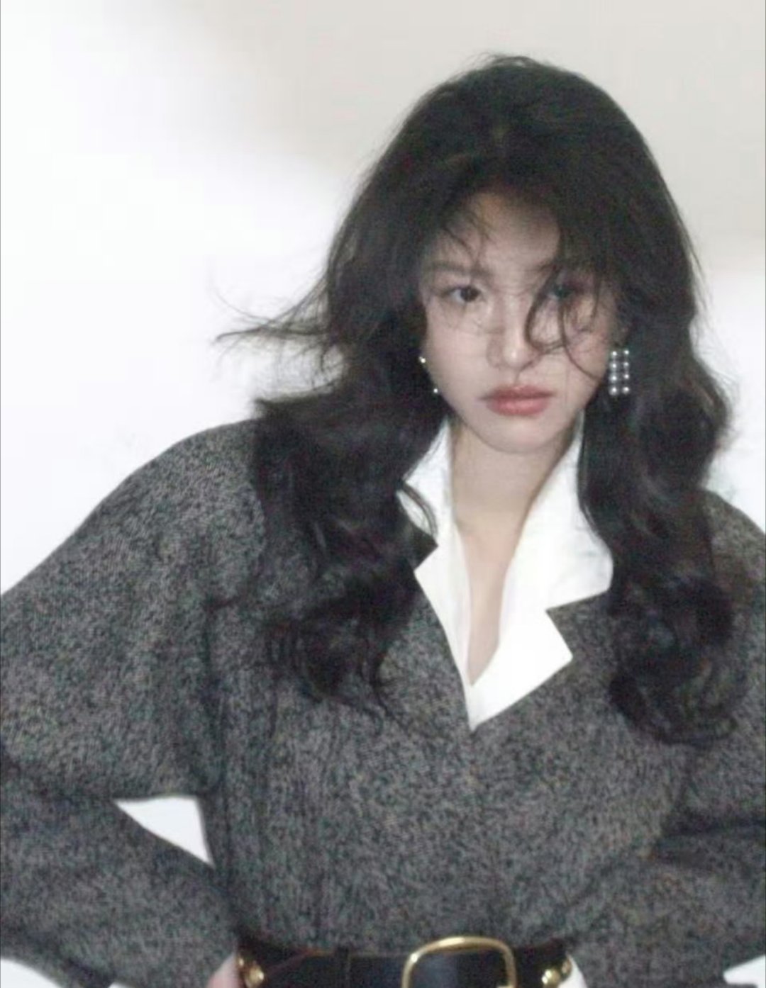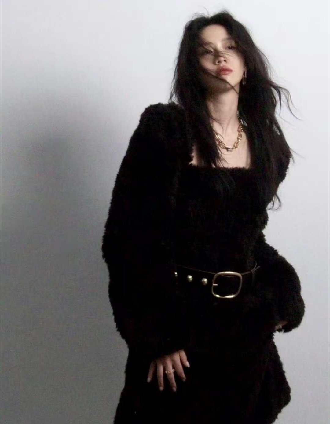李圣经的冬日穿搭真的是高个子女生的福音!一件廓形棕色大衣,搭配水洗浅蓝阔腿牛仔裤