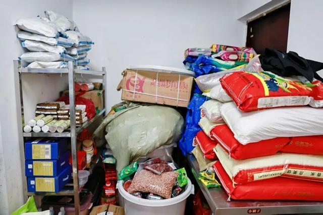 在餐厅角落里有一个储物室,米、面、油、挂面堆得满满当当。许多好心人匿名送来物资,“常常不知道是谁送来的。”姜苗笑道。