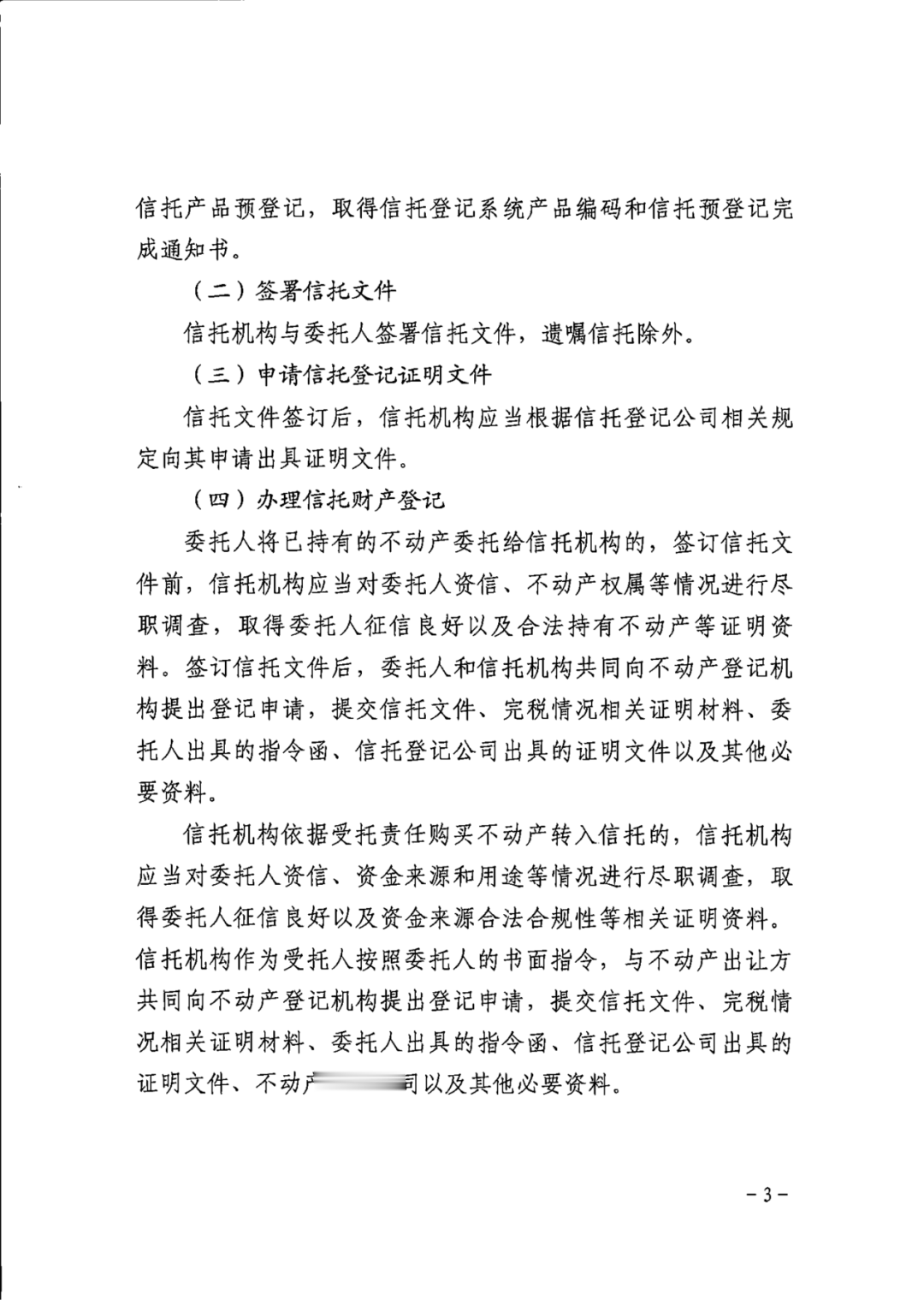 《通知》明确了不动产信托财产登记适用范围、申请及办理流程、所需文件、税收政策等细节,在信托财产登记记载方式环节创新提出“一体两户”和“持有+购买”双轨并行模式。一是“一体两户”实现风险隔离。在试点城市基础上再进一步,明确信托公司财产登记可“一体两户”,即将信托财产的不动产权证书上“权利人”一栏,由“XX信托公司”调整为“XX信托公司(受托持有)”,进一步区分信托公司自有财产和信托财产。二是推行“持有+购买”双轨并行机制,除现有不动产“装入信托”模式外,新增信托受托购买不动产渠道,有助于拓宽不动产信托业务场景,进一步激活房地产市场多元需求。