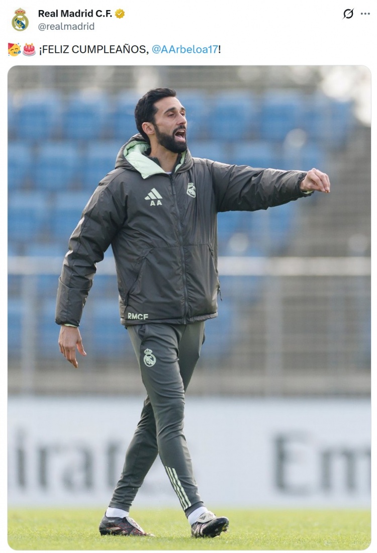 直播吧1月17日讯今天是皇马新帅阿韦洛亚的43岁生日,皇马官方为他庆生。