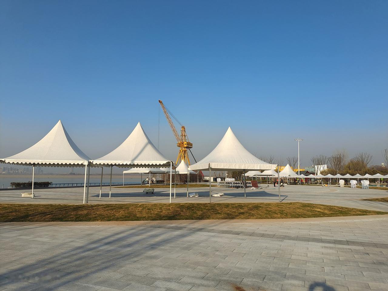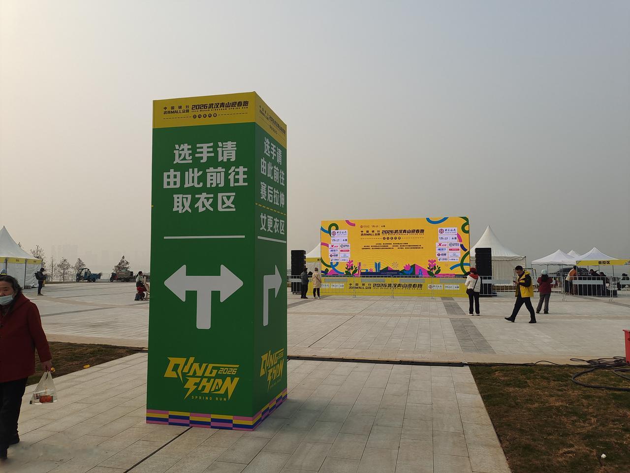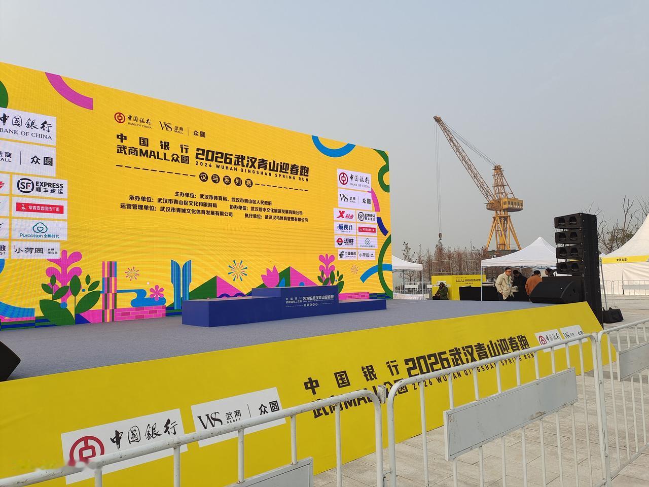 青山马拉松,明天上午8点开始,比赛终点建设三路江滩公园布置中。