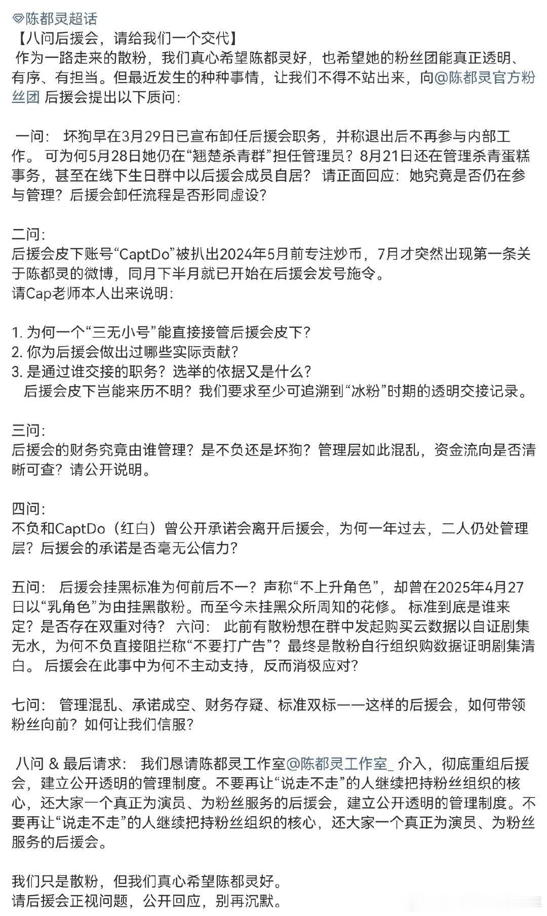 陈都灵粉丝维权要求后援会重组,据说职嘿卧底陈都灵 后援会 支持陈都灵向全世界安利