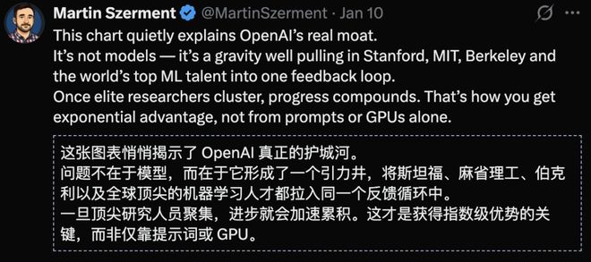 不是提示词或GPU,而是聚集顶尖人才,把来自全球的顶尖人才拉入到同一个反馈循环,最终形成复利效应。
