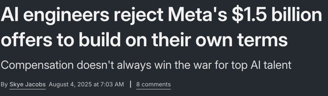 即便开出价值15亿美元的薪酬包,Meta仍未能说服部分顶尖AI工程师加入——他们选择了更具自主权的创业道路。