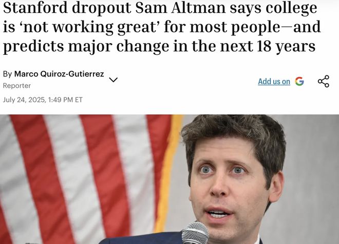 奥特曼甚至说,大学对「大多数而言,并没什么效果」。