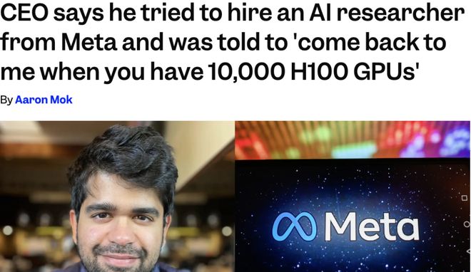 2024年,有位Meta的研究员拒绝Perplexity的offer时,只说了一句:「等你们有一万张H100再来找我。」