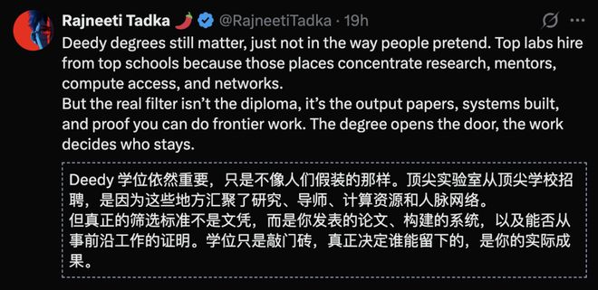 Deedy认为,学历依然重要。但他也同意,这份名单只是说这些名校的最好的学生主动性强,不一定能反映其教育质量有多好。