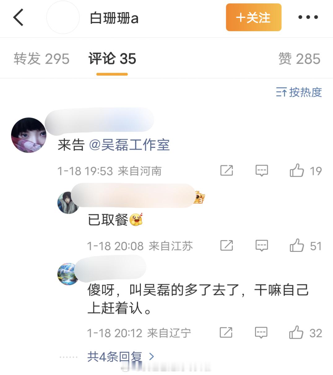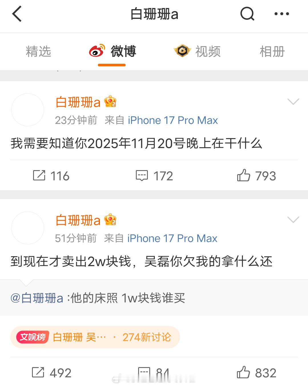 白珊珊发博“吴磊你欠我的拿什么还”,之前她转发过司晓迪的爆料博说等30岁的时候,也要整理出一份男明星名单昭告天下。不知道这个人是不是恶意碰瓷或者造谣,吴磊粉丝已经艾特工作室,并对造谣内容进行了保存取证。 白珊珊 吴磊你欠我的拿什么还 吴磊