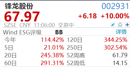 机器人概念震荡拉升,昊志机电涨超10%,复牌的锋龙股份更是走出14连板,该股今年涨幅已超114%。锋龙股份此前停牌就股票交易波动情况进行核查,公司公告警示,股票价格已严重脱离公司基本面情况,存在市场情绪过热、非理性炒作风险。