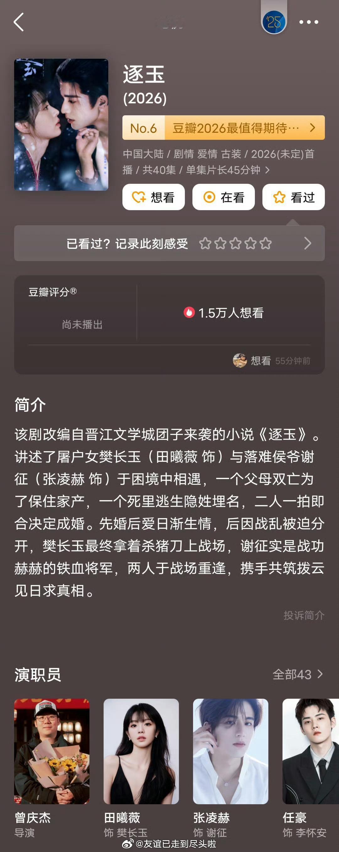 逐玉3月14日上,张凌赫田曦薇双引擎驱动,纯恨夫妇的梗也很高话题度,这剧有机会爆吗?